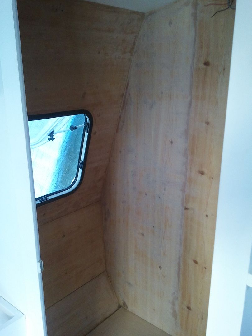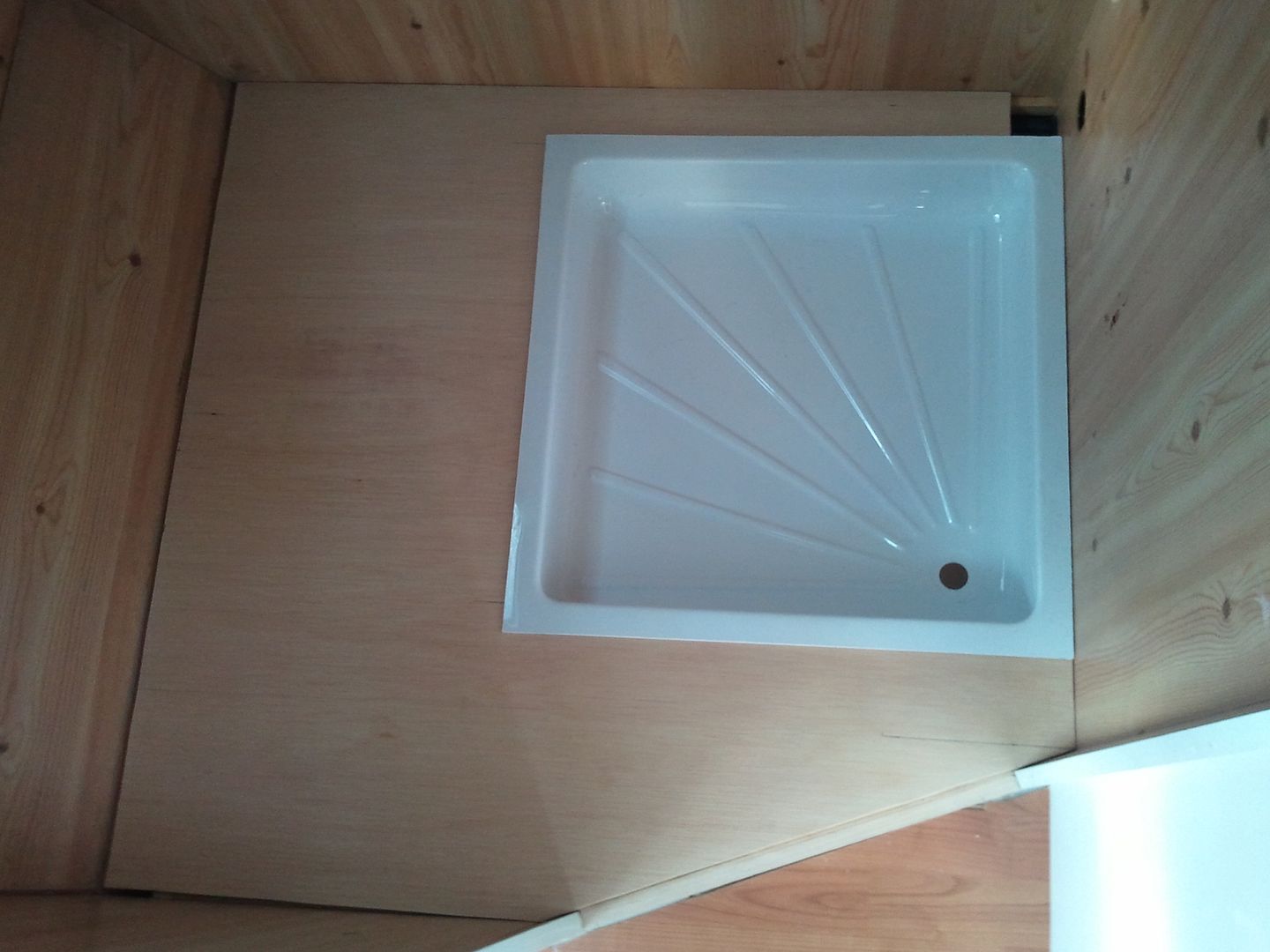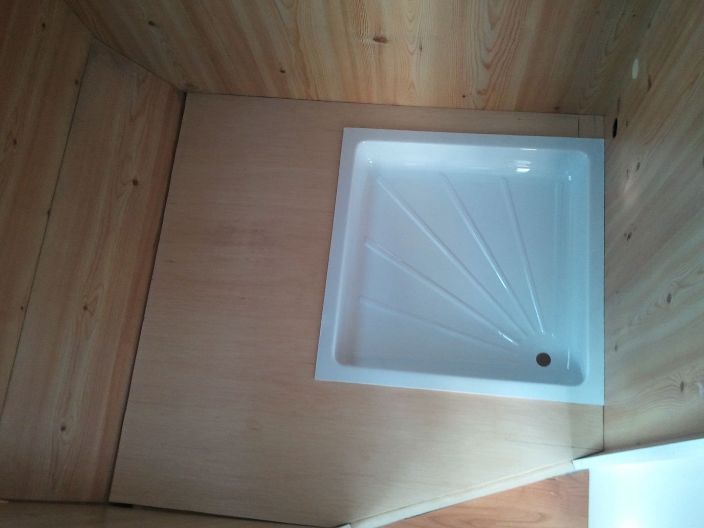 Pues hoy he seguido con el WC. Aqui el nuevo suelo cortado me falta un trocito en esta foto. Al aprovechar maderas es lo que tiene. Solo esta sobre puesto, para probarlo.