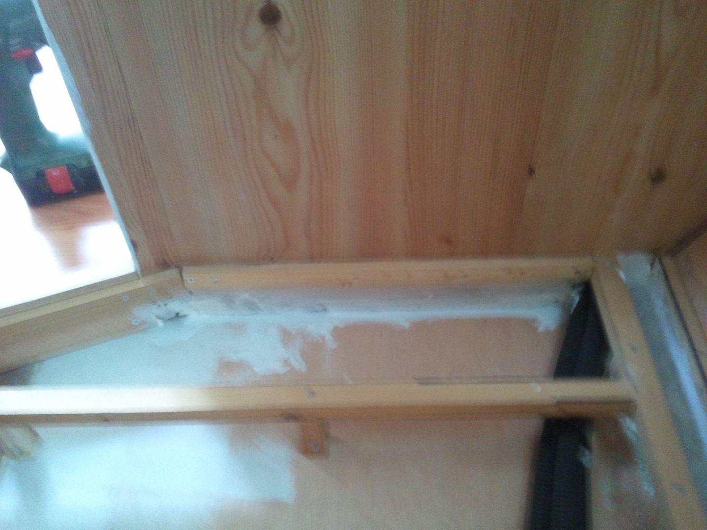 En este lado tambien esta cojida a la pared. Me falta algun tornillo mas pero el taladro se quedo sin bateria.