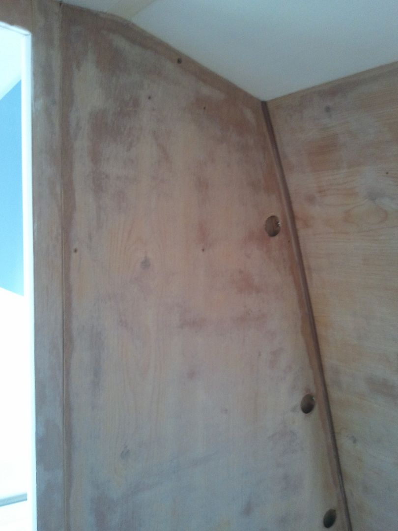 Luego he lijado la pared.  Se ve que hay un trozo que esta mas lijado que otro. Es por que en la linea del plato de ducha ira friso de PVC y el lo demas papel y para que pege mejor lo he lijado mas.