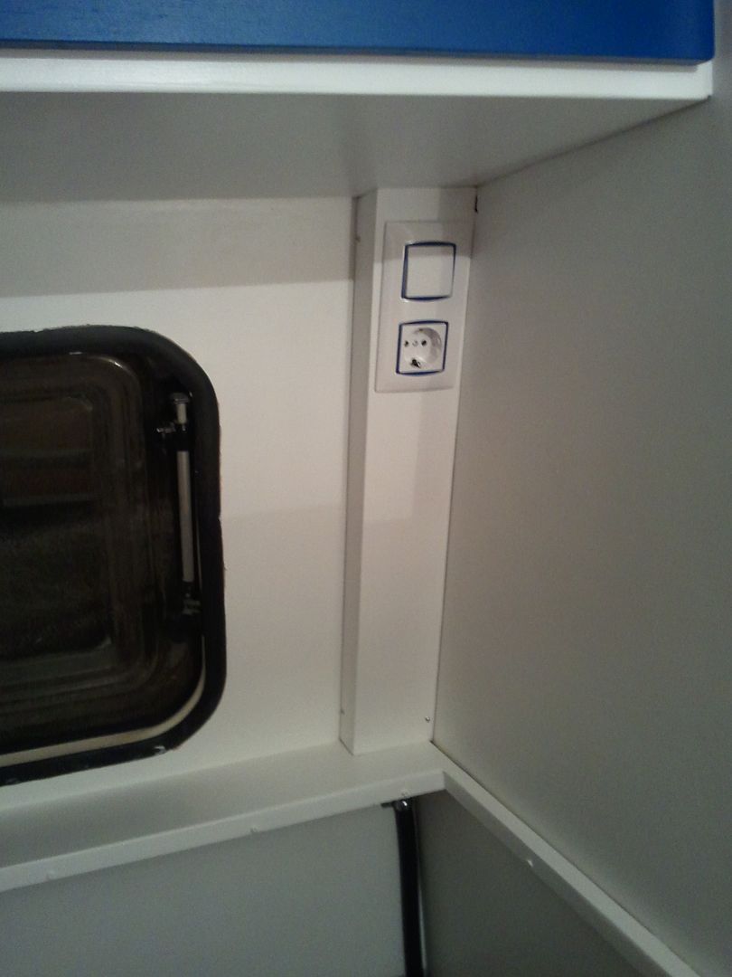 La columna de la cocina, con el enchufe y el interruptor conectados.