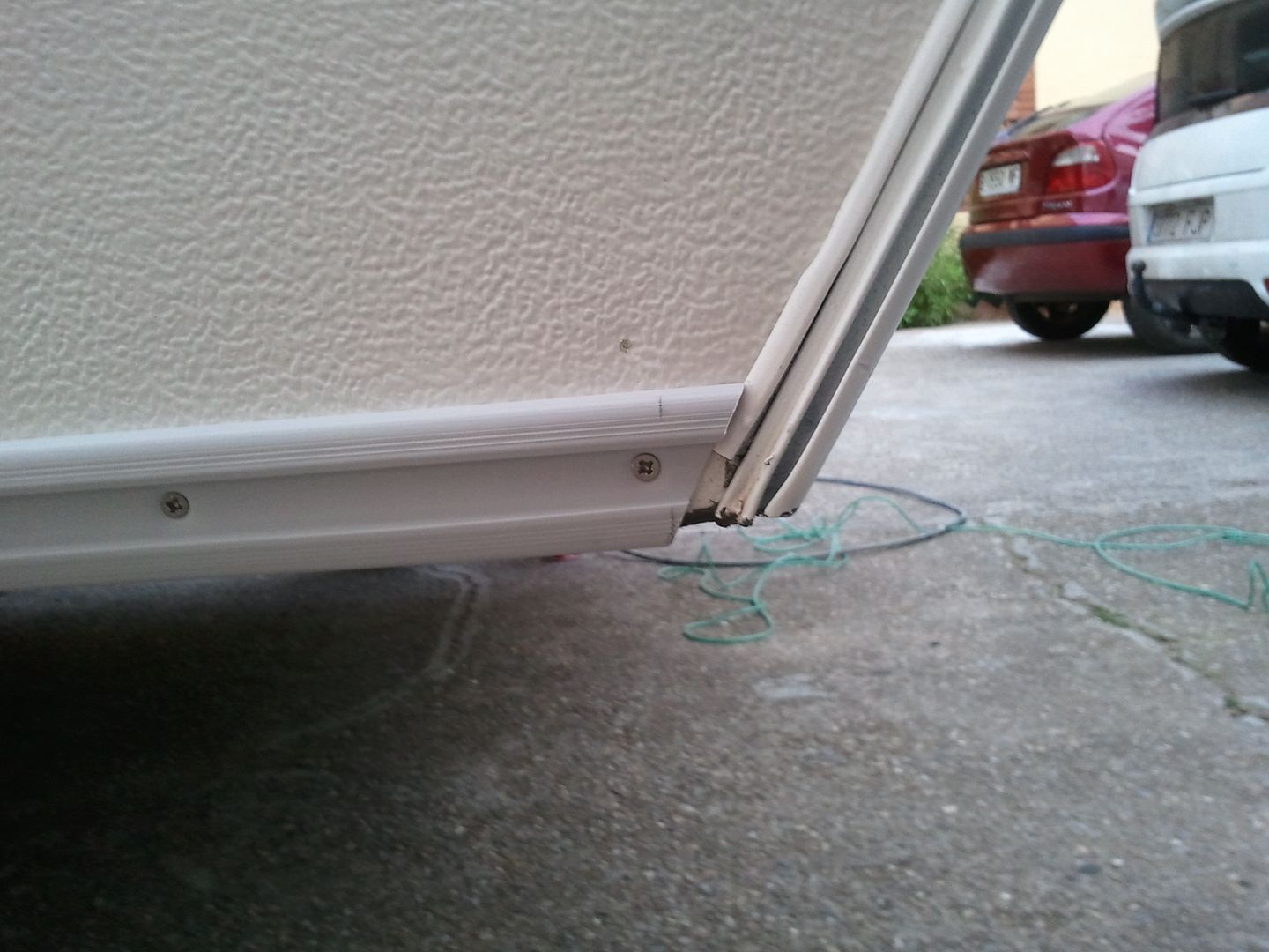 Aqui el lateral de la puerta. Que solo me falta un perfil por colocar por que la guia del faldon reutilizo la que tenia, y este trozo estaba rota y la estoy reparando.