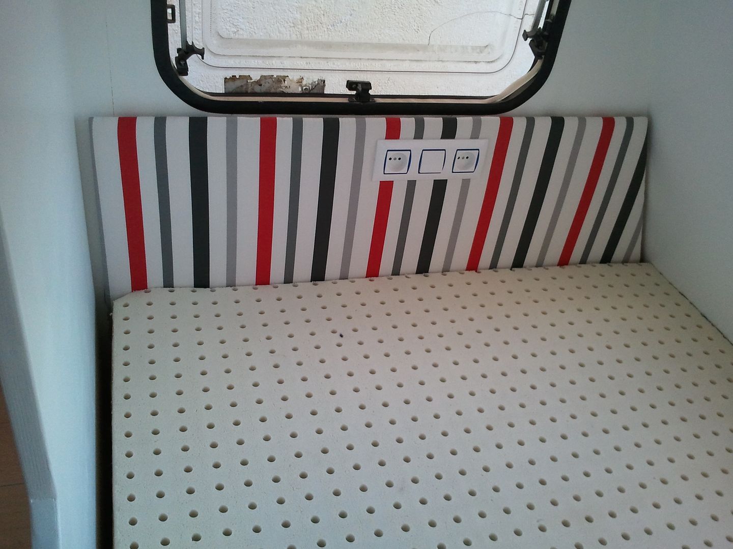 Luego he tapizado el cabezal y he hecho las conexiones. Quizas cambien la tela...