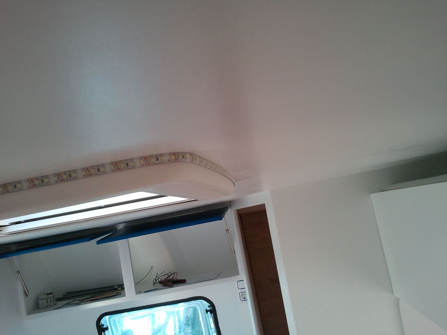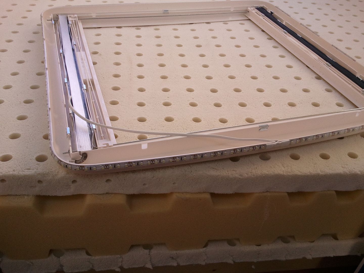 Aqui la tira de leds ya enganchada en el embellcedor de la claraboya.