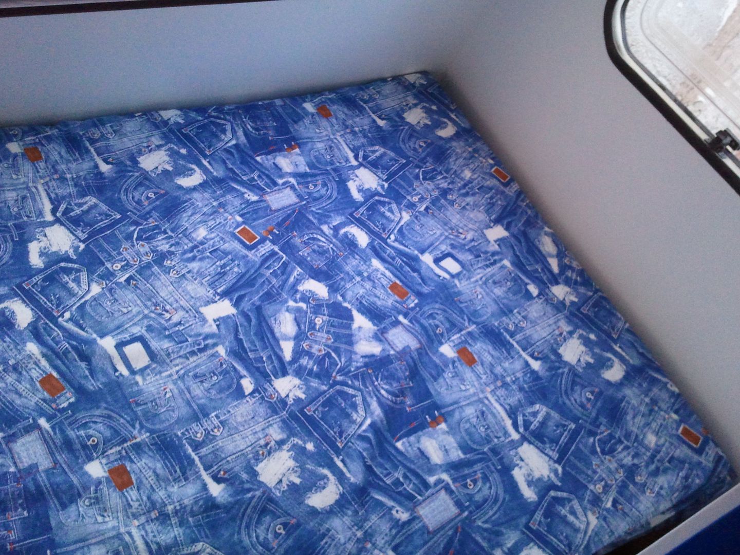 Esta es la funda del colchon, las espumas del niño tambien van con la misma tela. Lo que no se si forrare el cabezal con la misma tela o dejar la que puse. Esta funda aun falta agustarla que le quedo un poco grande!!!