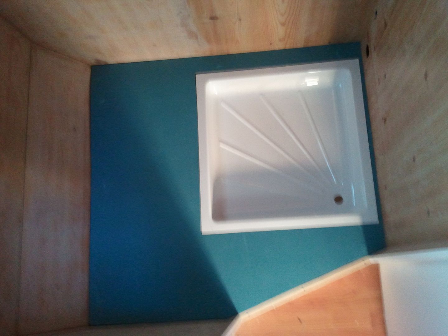 Este es el nuevo suelo del WC. Le puesto dos planchas por que me quedo un peli bajo el suelo respecto al plato de ducha.