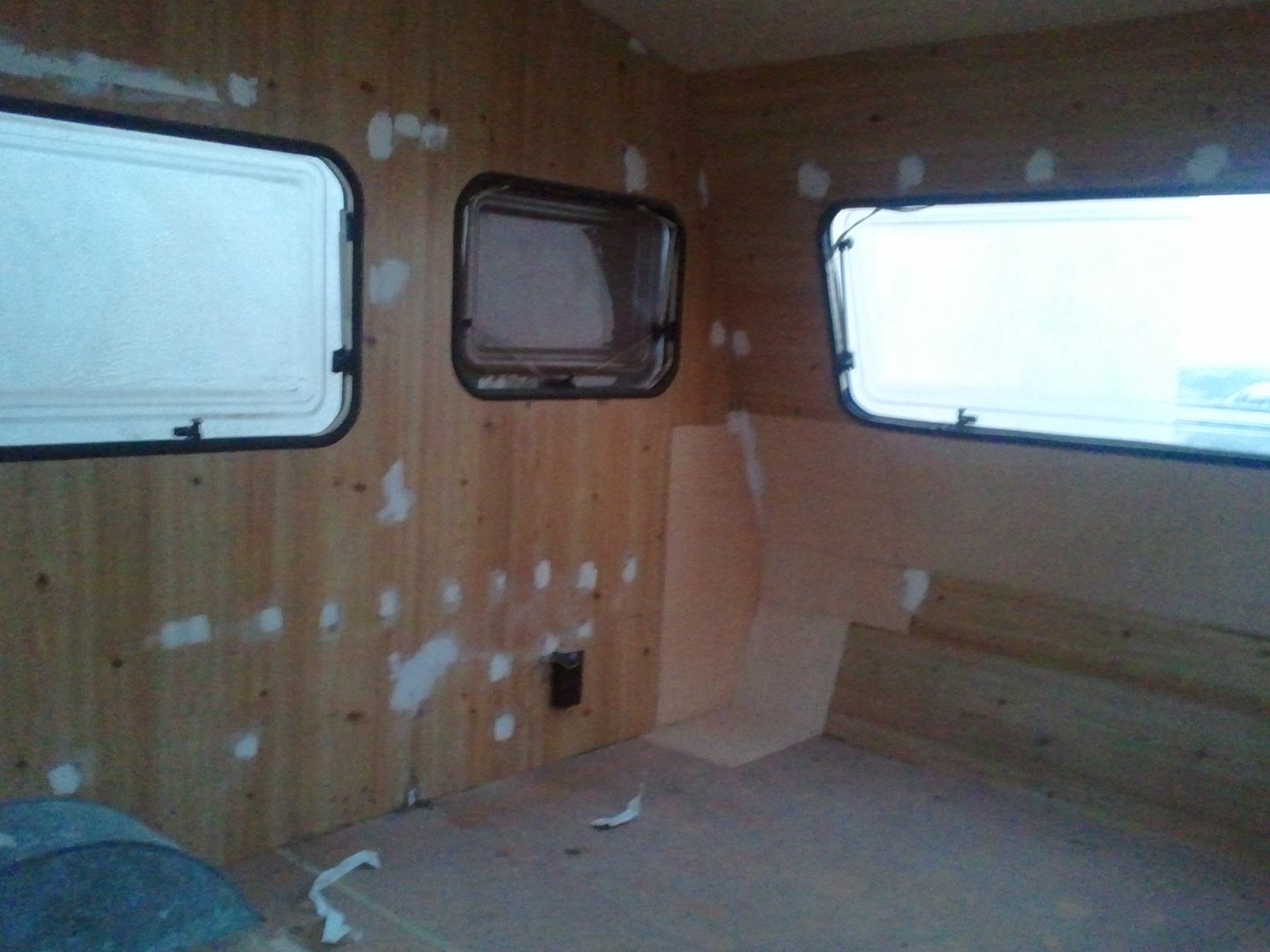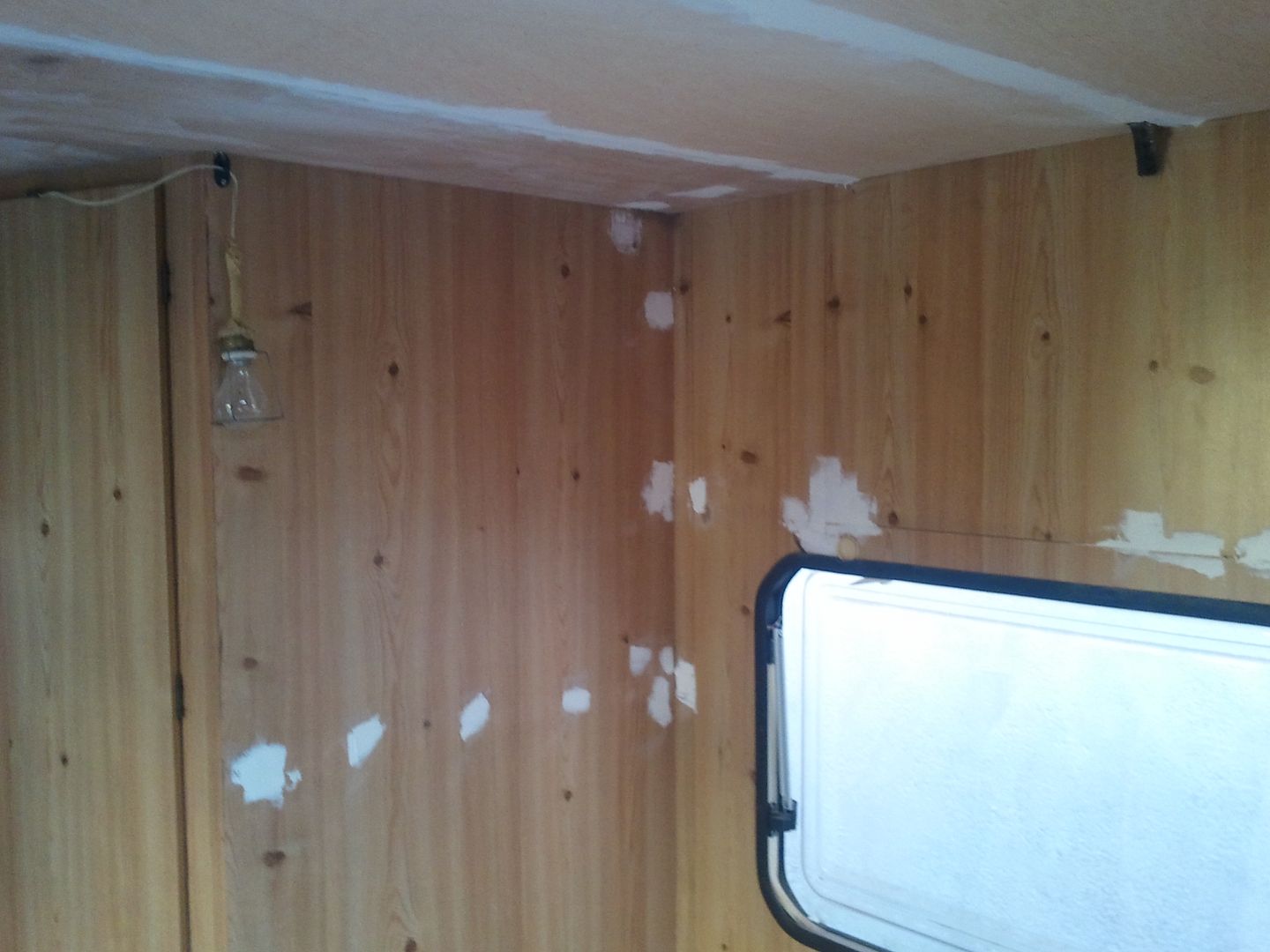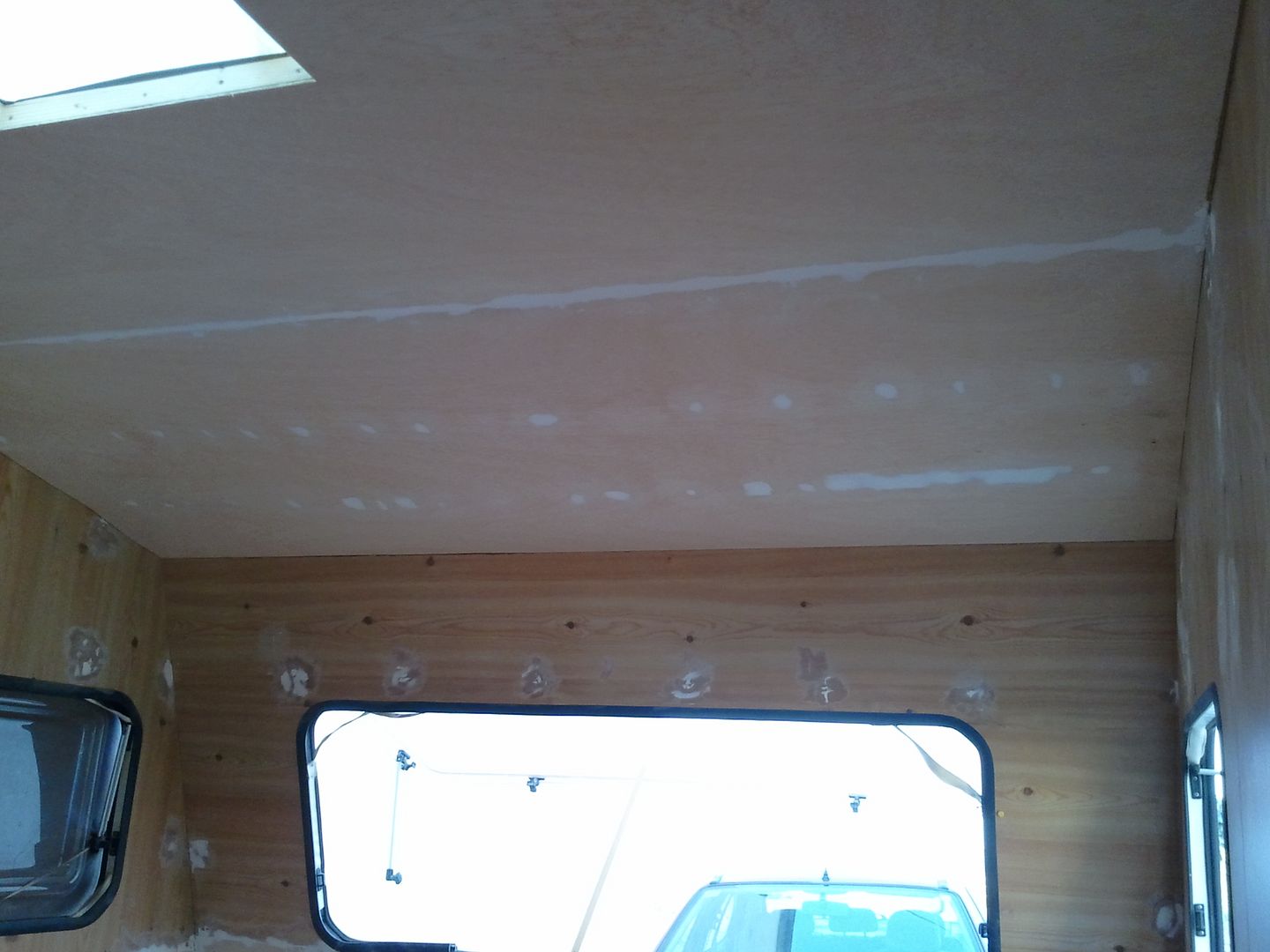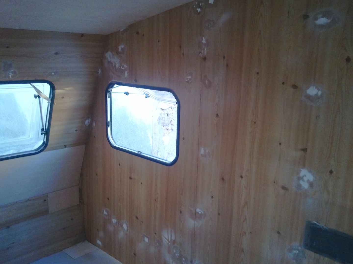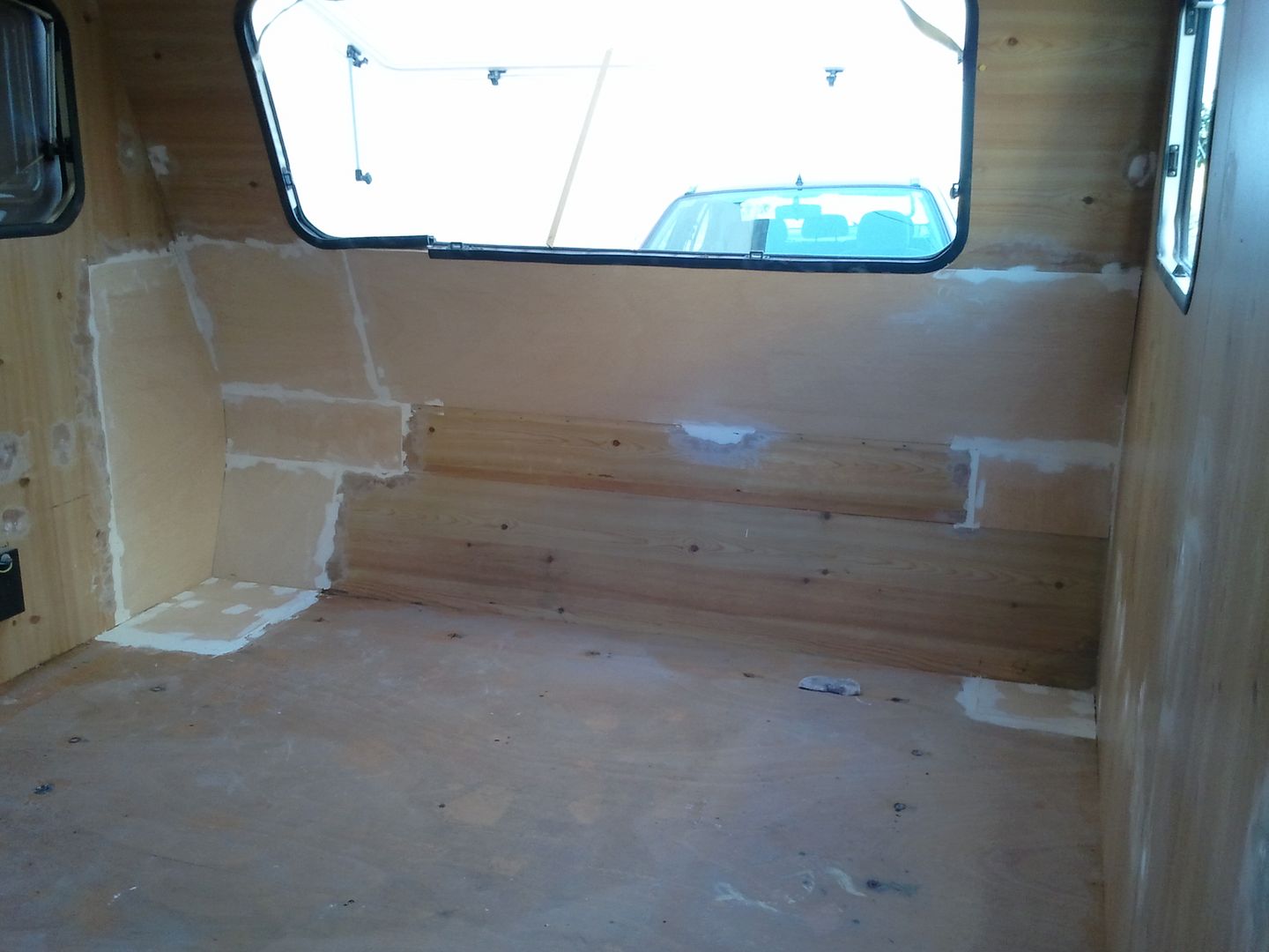 Aqui nuevamente a enmasillar, despues de limpiar la caravana por dentro! YA se aprecia en las fotos.