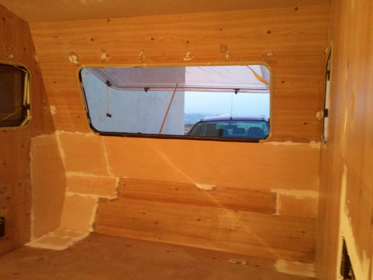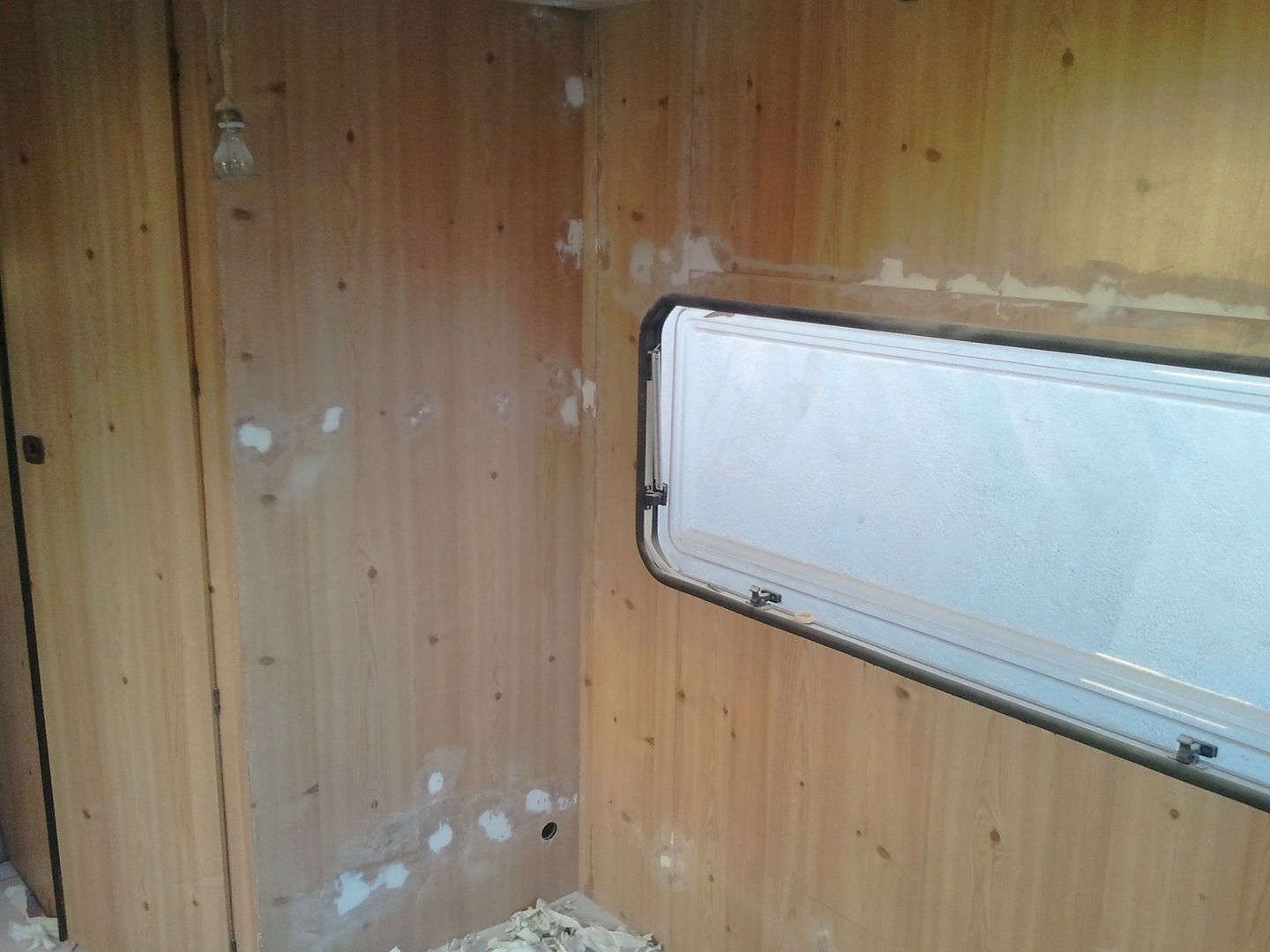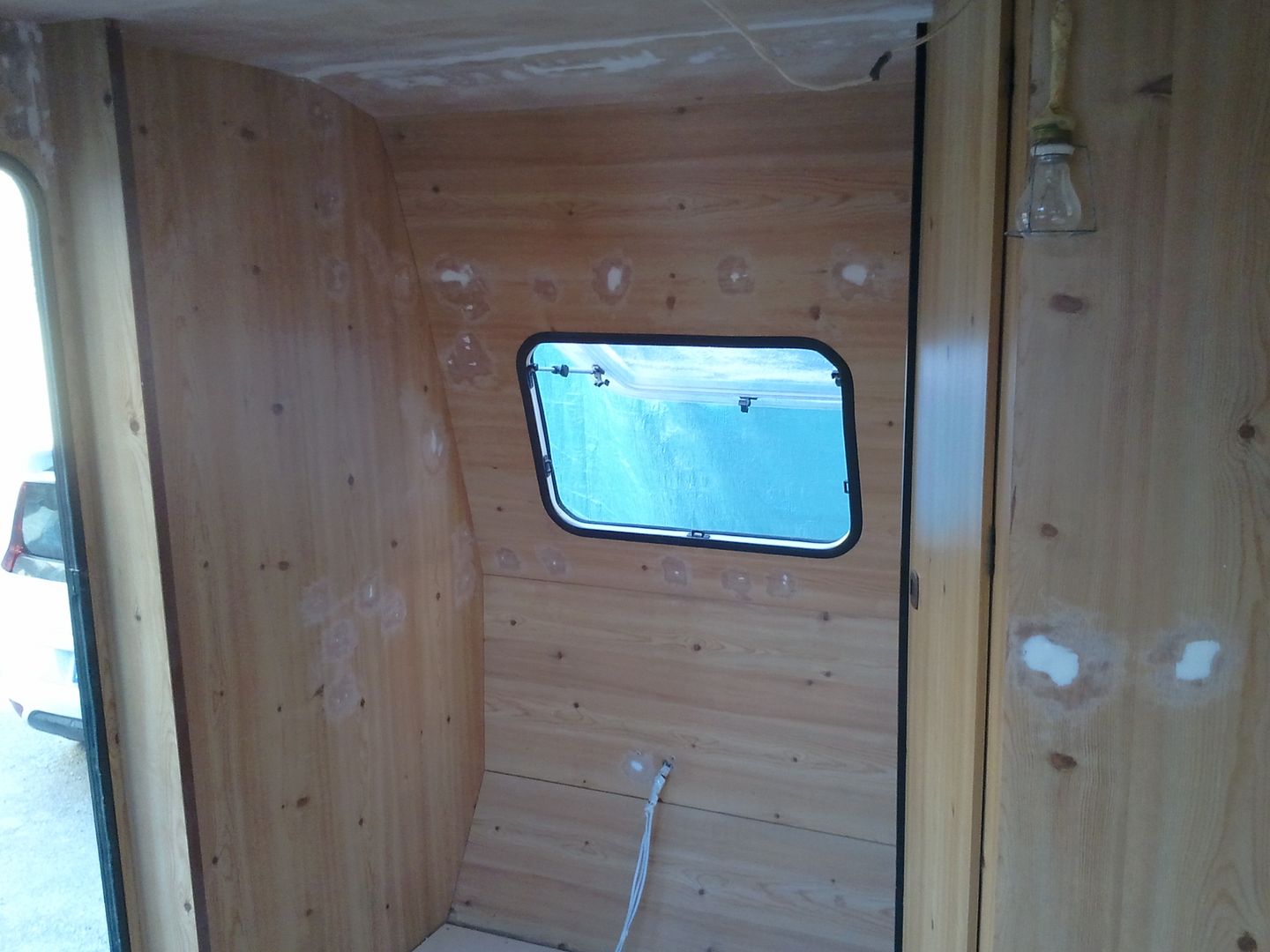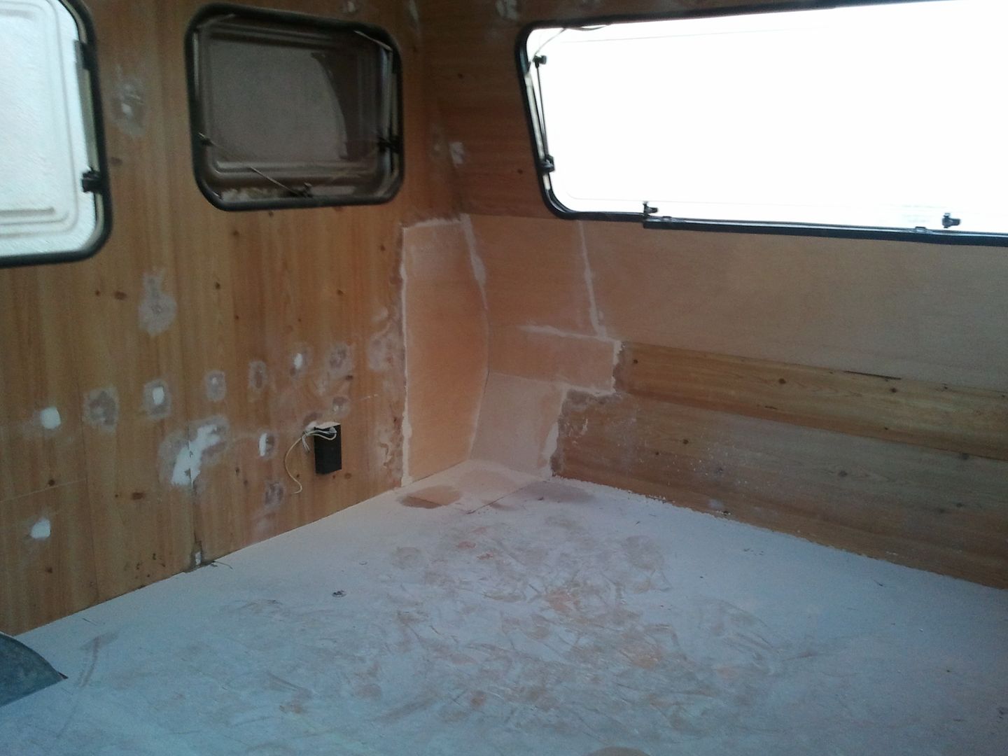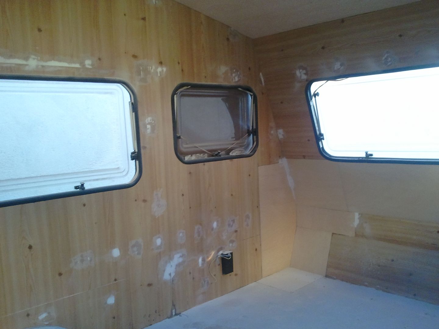 Aqui nuevamente a enmasillar, despues de limpiar la caravana por dentro! YA se aprecia en las fotos.