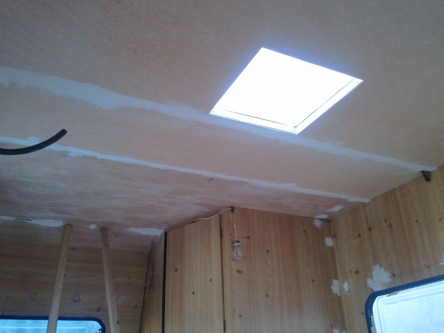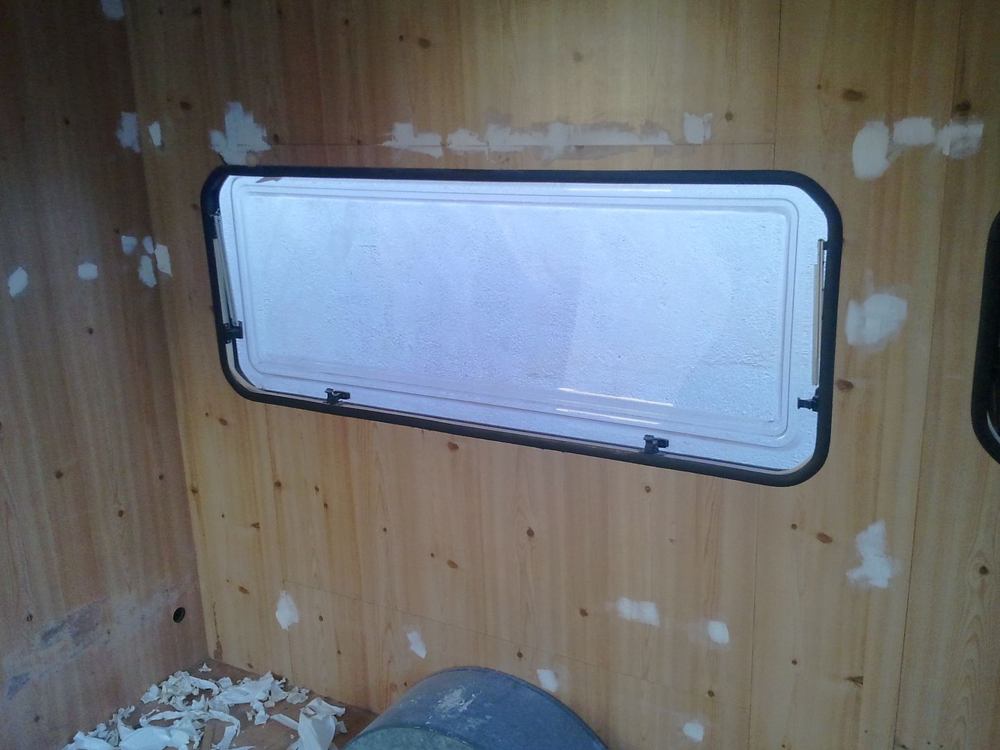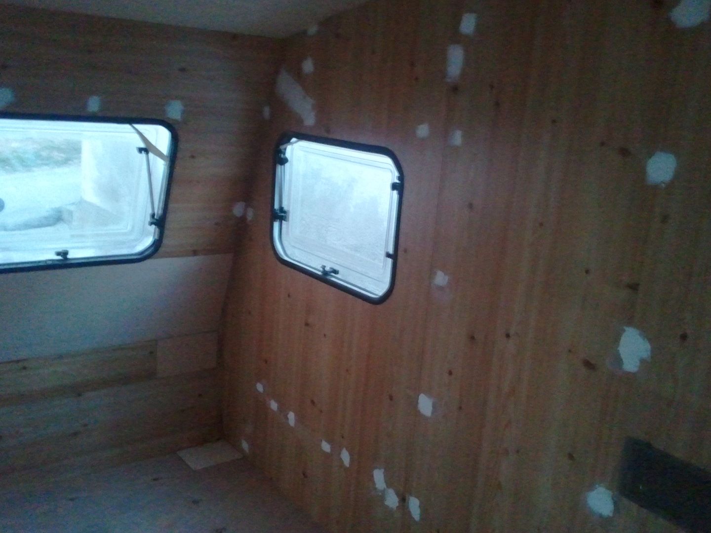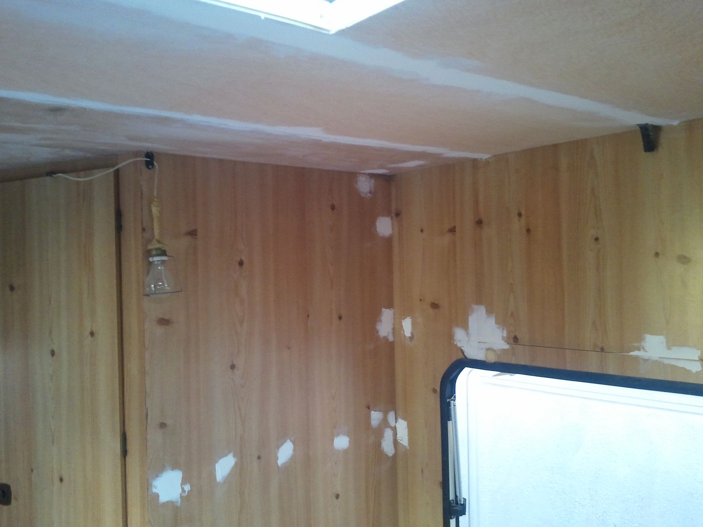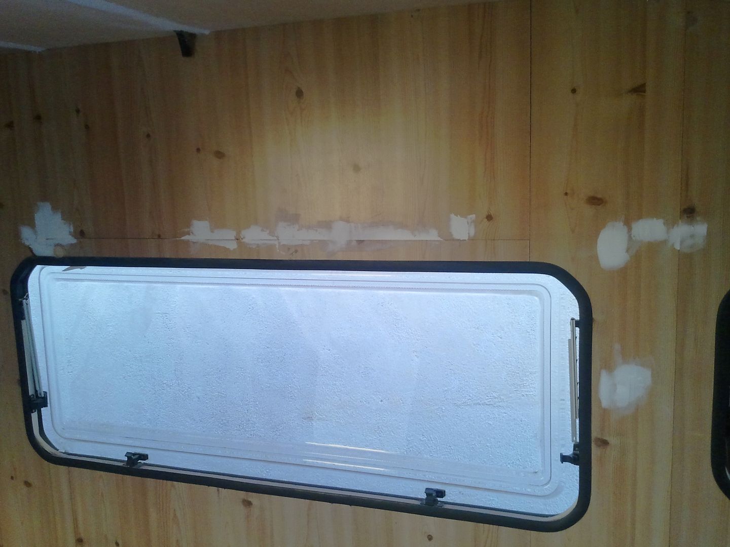 Aqui nuevamente a enmasillar, despues de limpiar la caravana por dentro! YA se aprecia en las fotos.