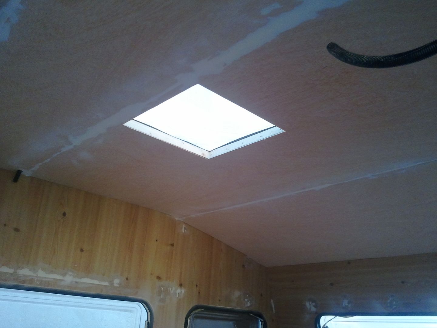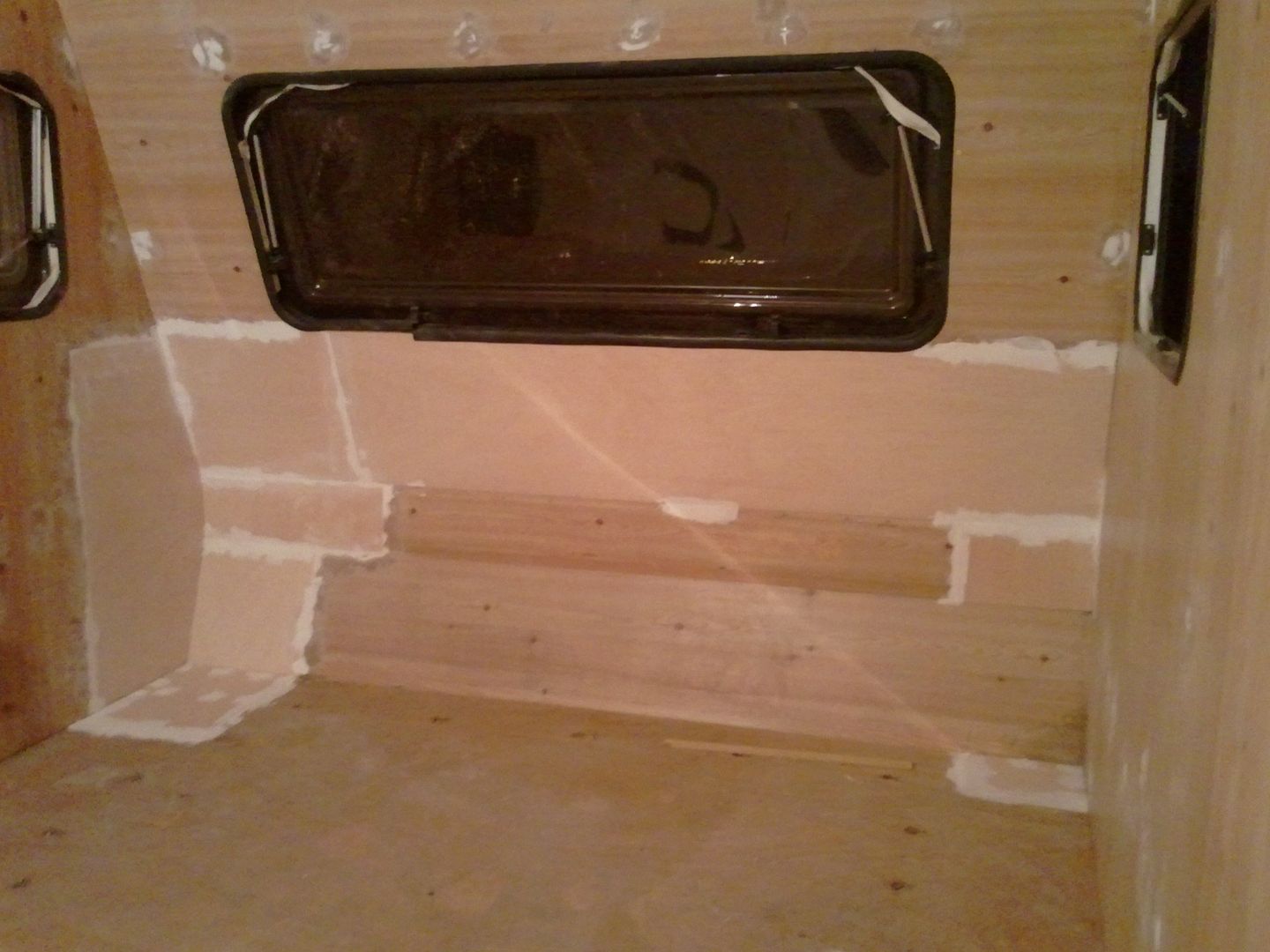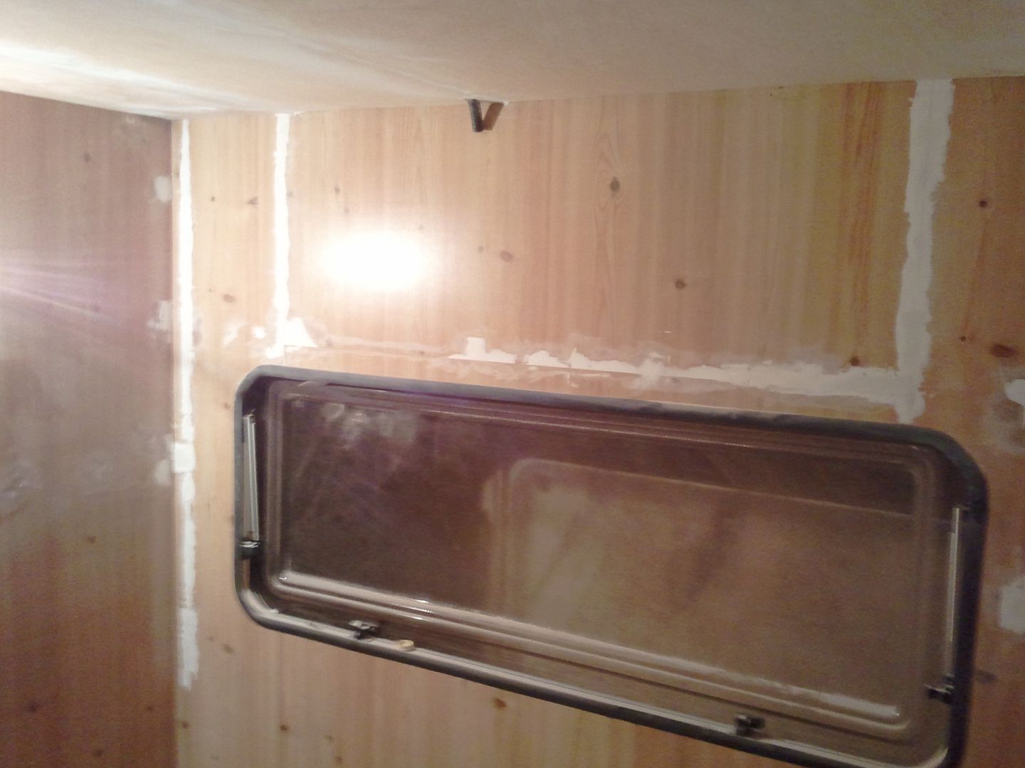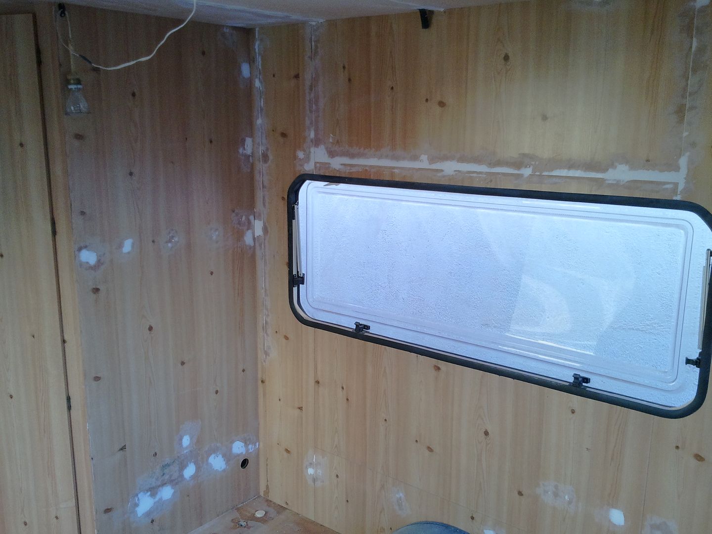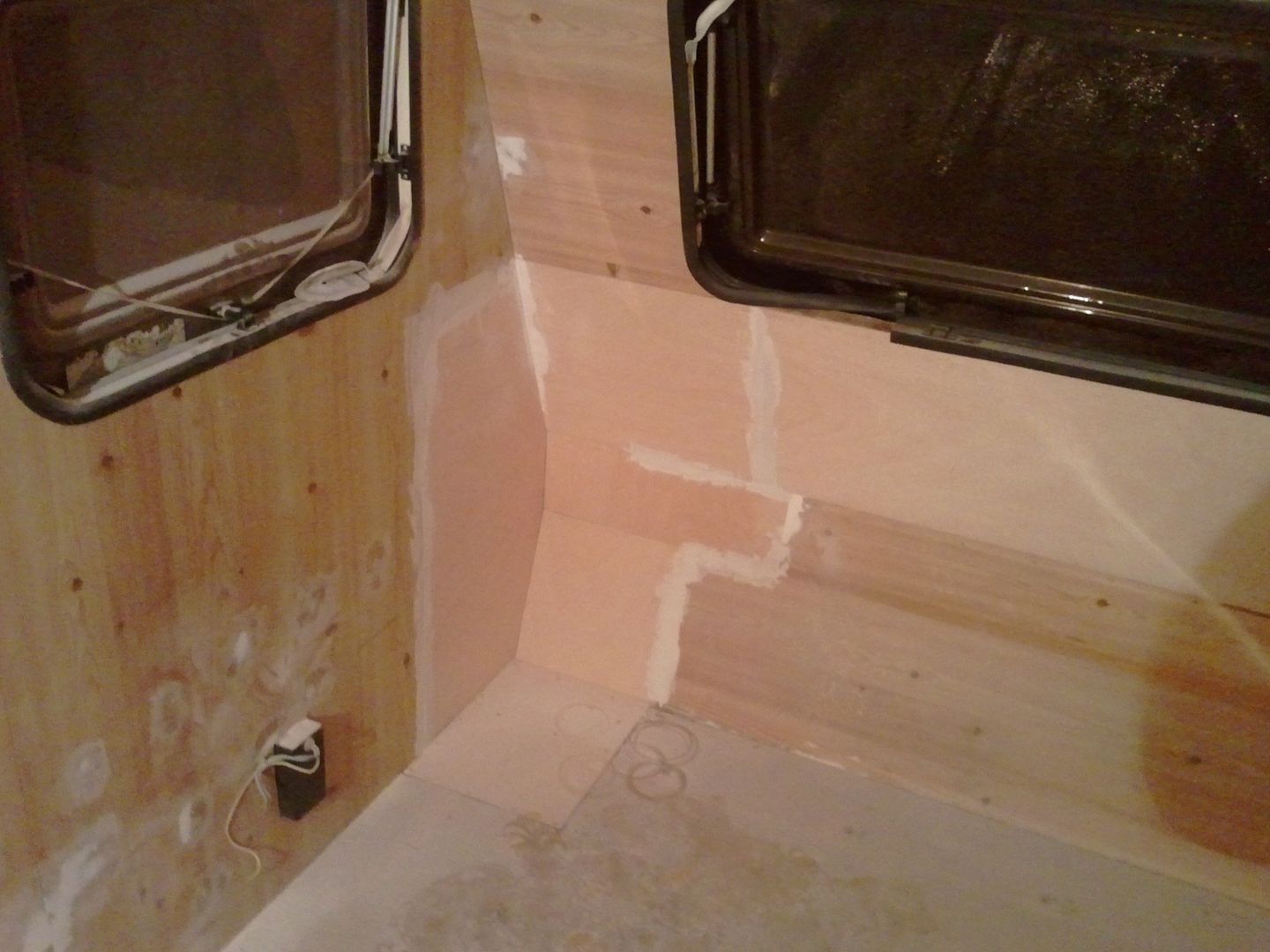 Aqui nuevamente a enmasillar, despues de limpiar la caravana por dentro! YA se aprecia en las fotos.