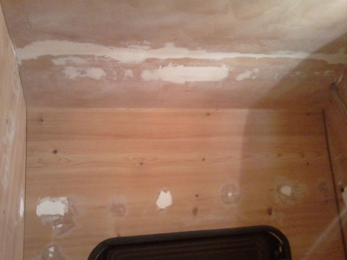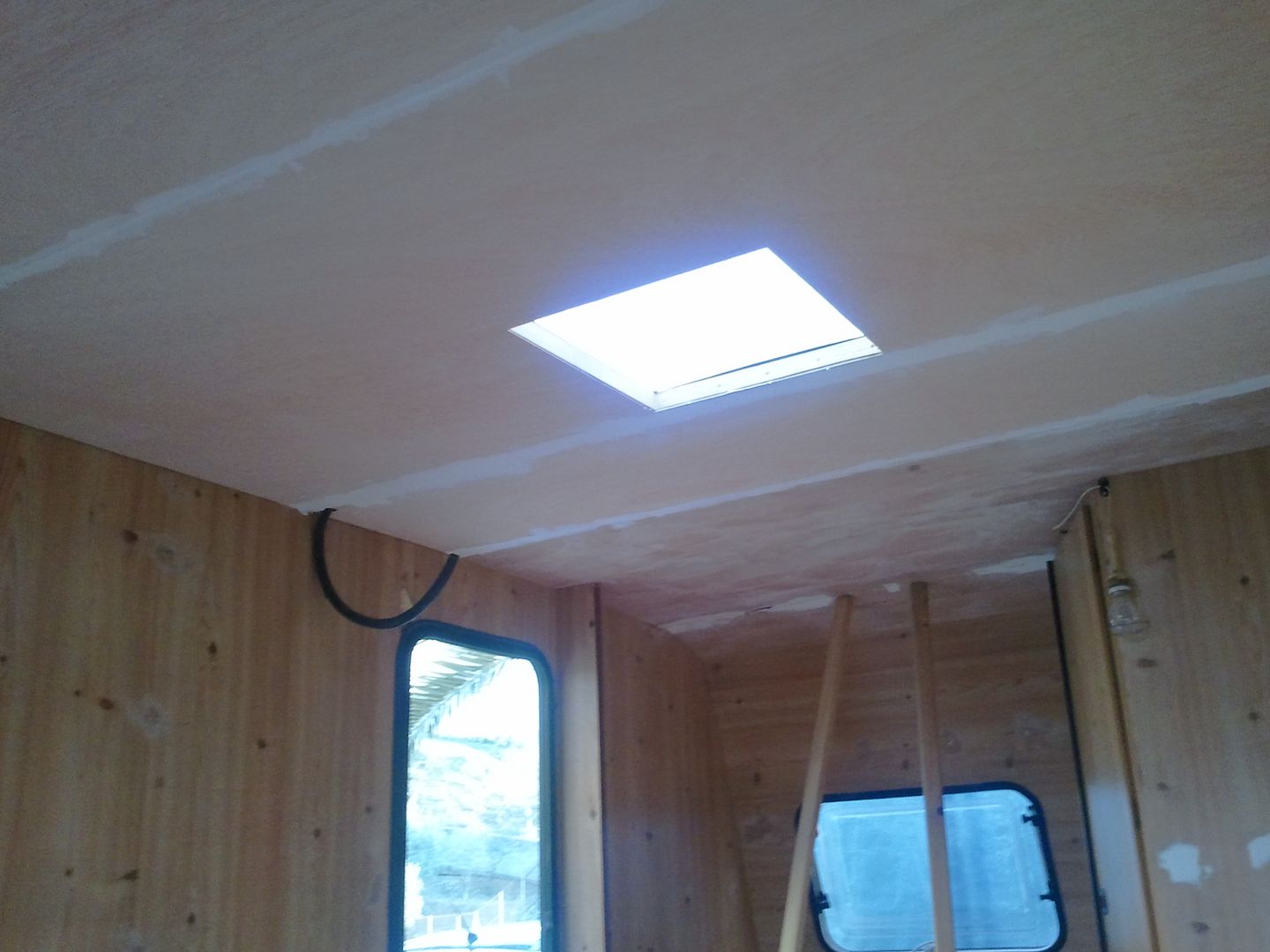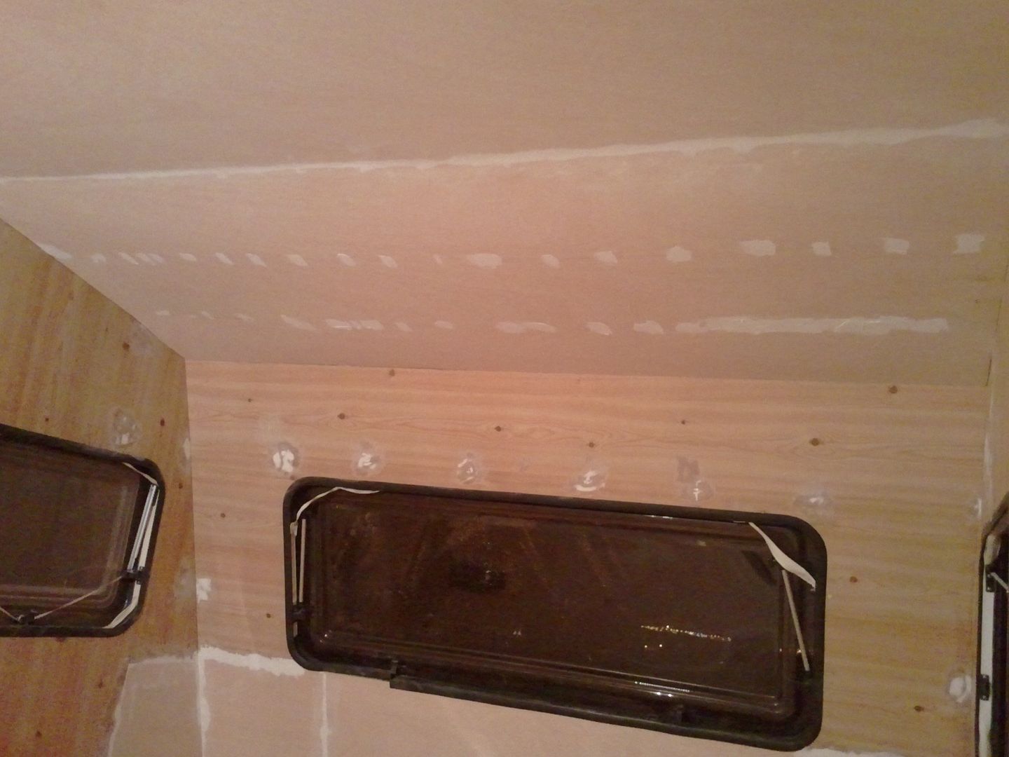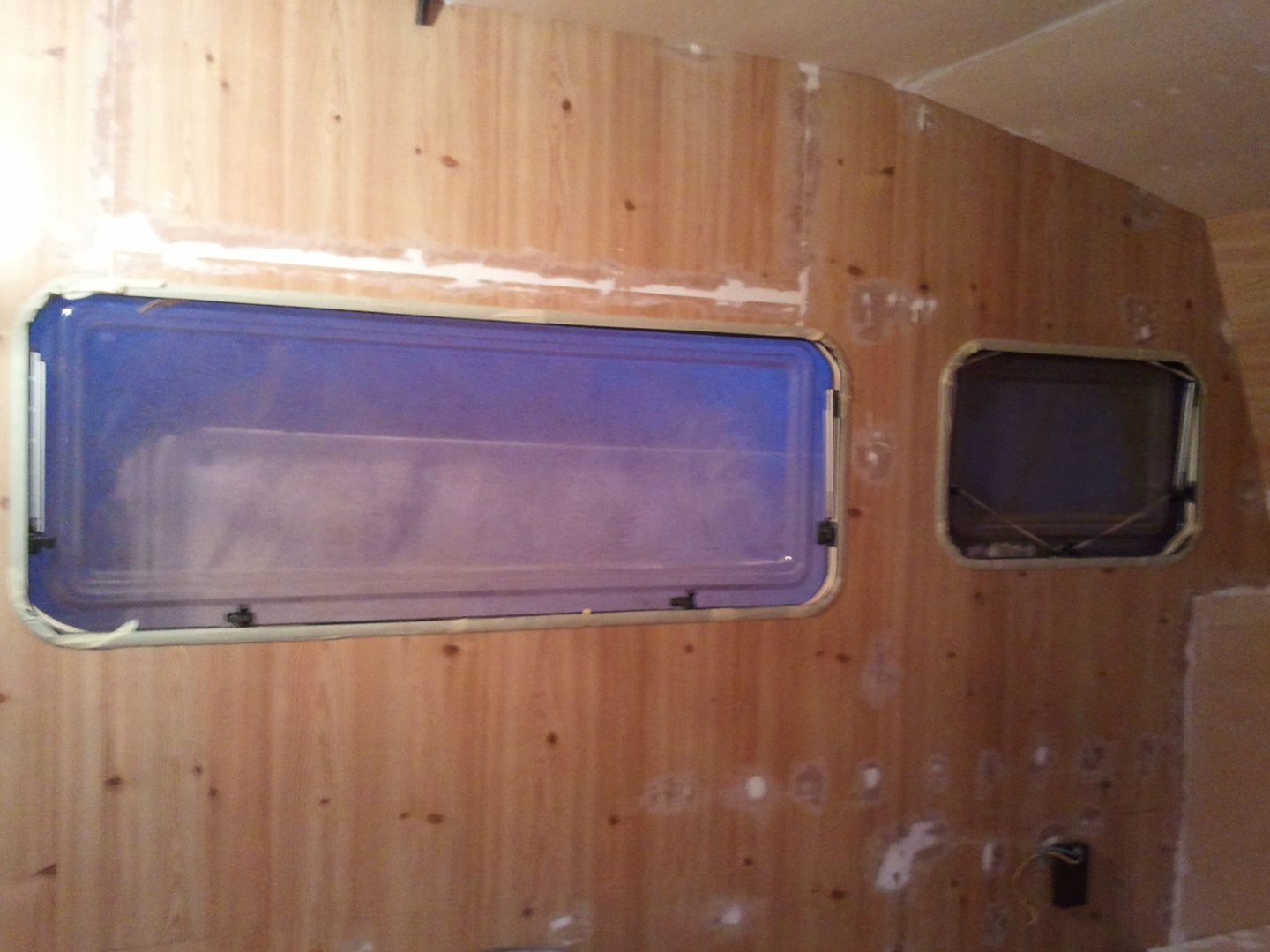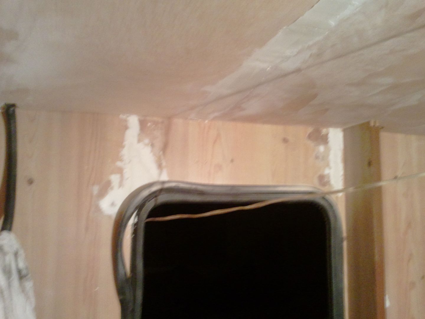 Aqui nuevamente a enmasillar, despues de limpiar la caravana por dentro! YA se aprecia en las fotos.