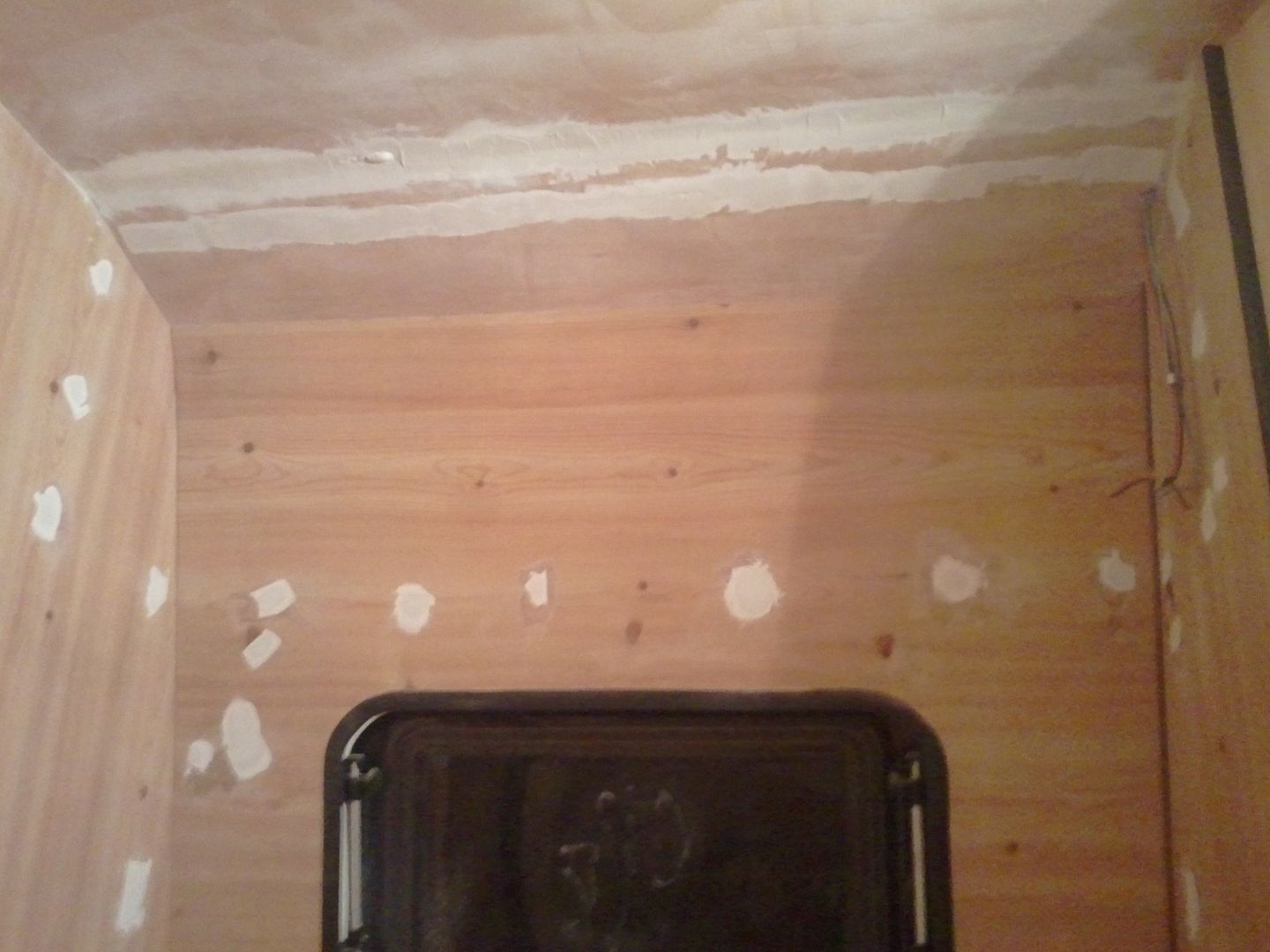 Una vez lijado toca repasar en algun sitio y acaba la parte de la cocina que no estaba hecho ya que se estaba pegando unas maderas.