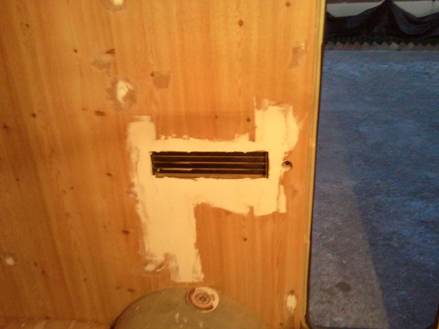 Este ha sido el imprevisto. He ido a sacar la mosquitera y se me ha venido trozos de pared, asi que a saner un poco, una buena lijada y ha enmasillar.
