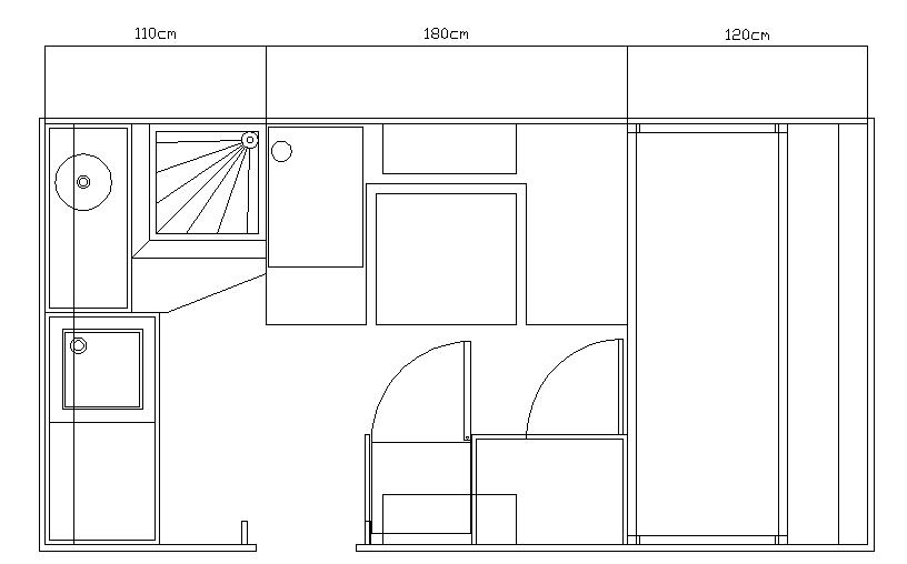 Un planol de la distribucion, aqui dibujado en U. El lado de la pared creo recordar que mide 30cm. En todo caso alli pondria al niño.