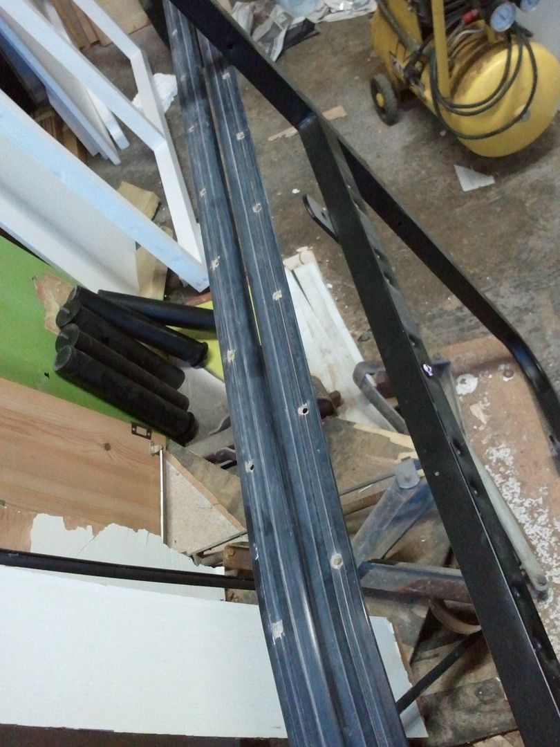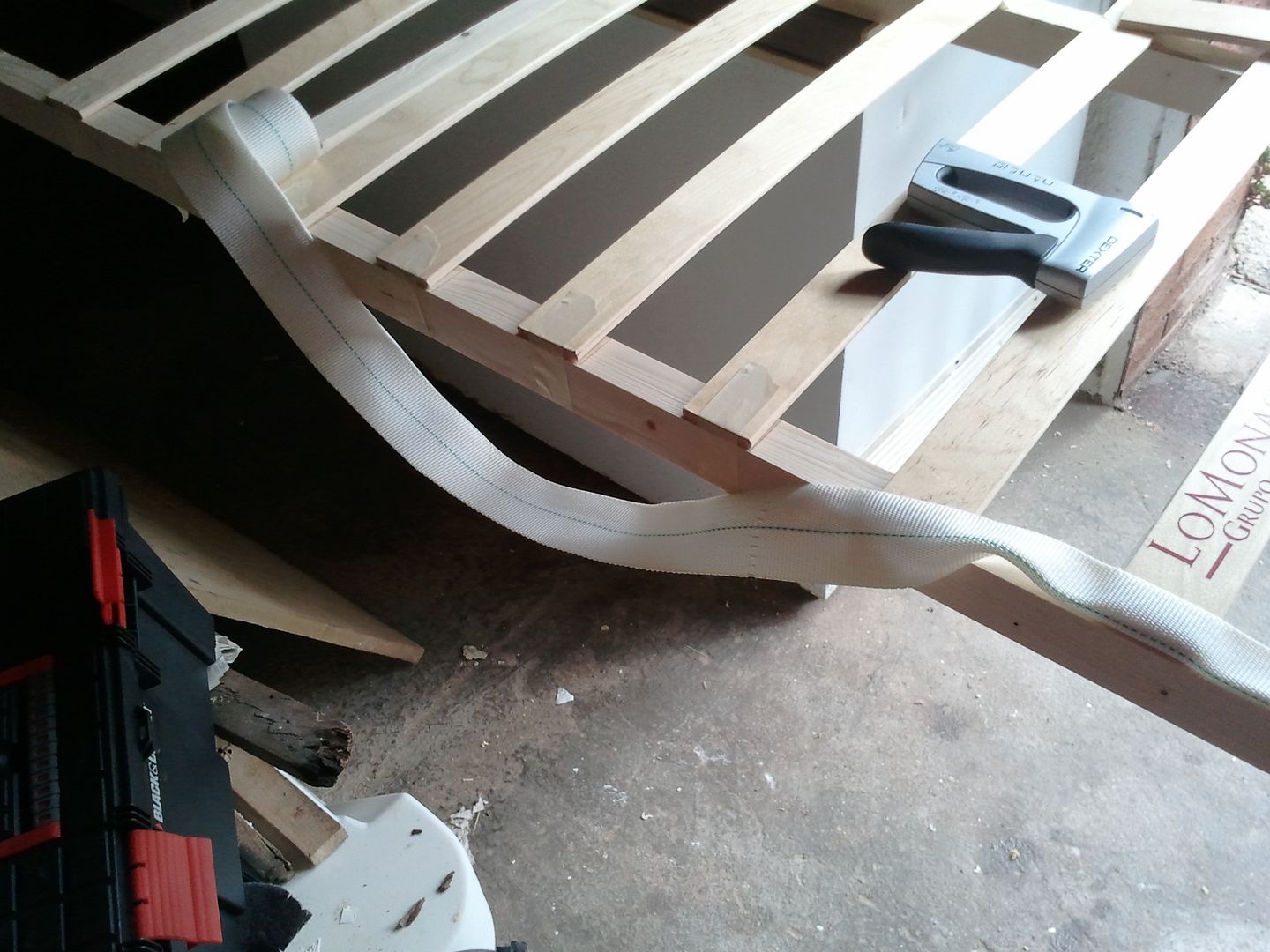 Bueno ya que hemos ido alli, yo he aprovechado para lijar las guias del avance. Mientras yo lijaba mi mujer le a dado imprimición a la estructura del somier. Antes pero he presentado como enganchare las lamas con la estructura, pero no me a gustado mucho asi que de las dos ideas que tenia hare la que no he hecho la prueba.