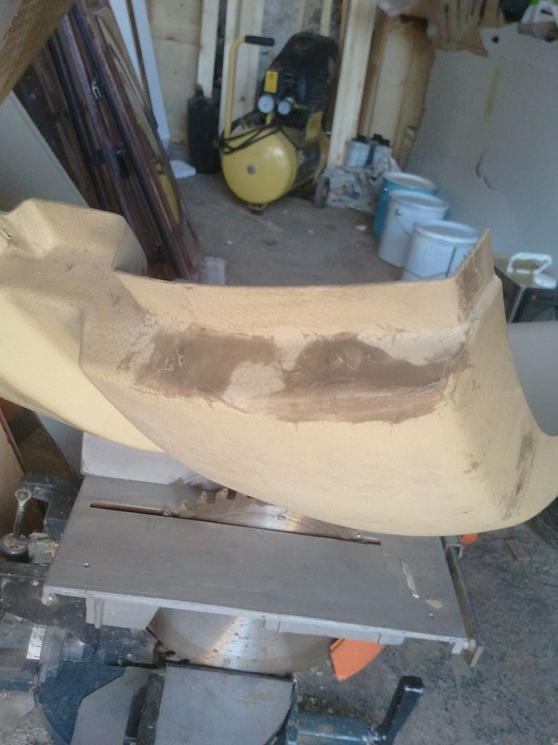 Y aqui he empezado a reparar el arcon delantaro, a ver como va la cosa. Lo he reparado con fibra de video.