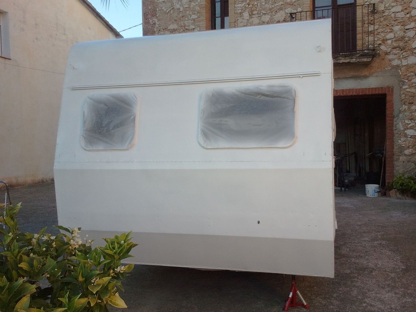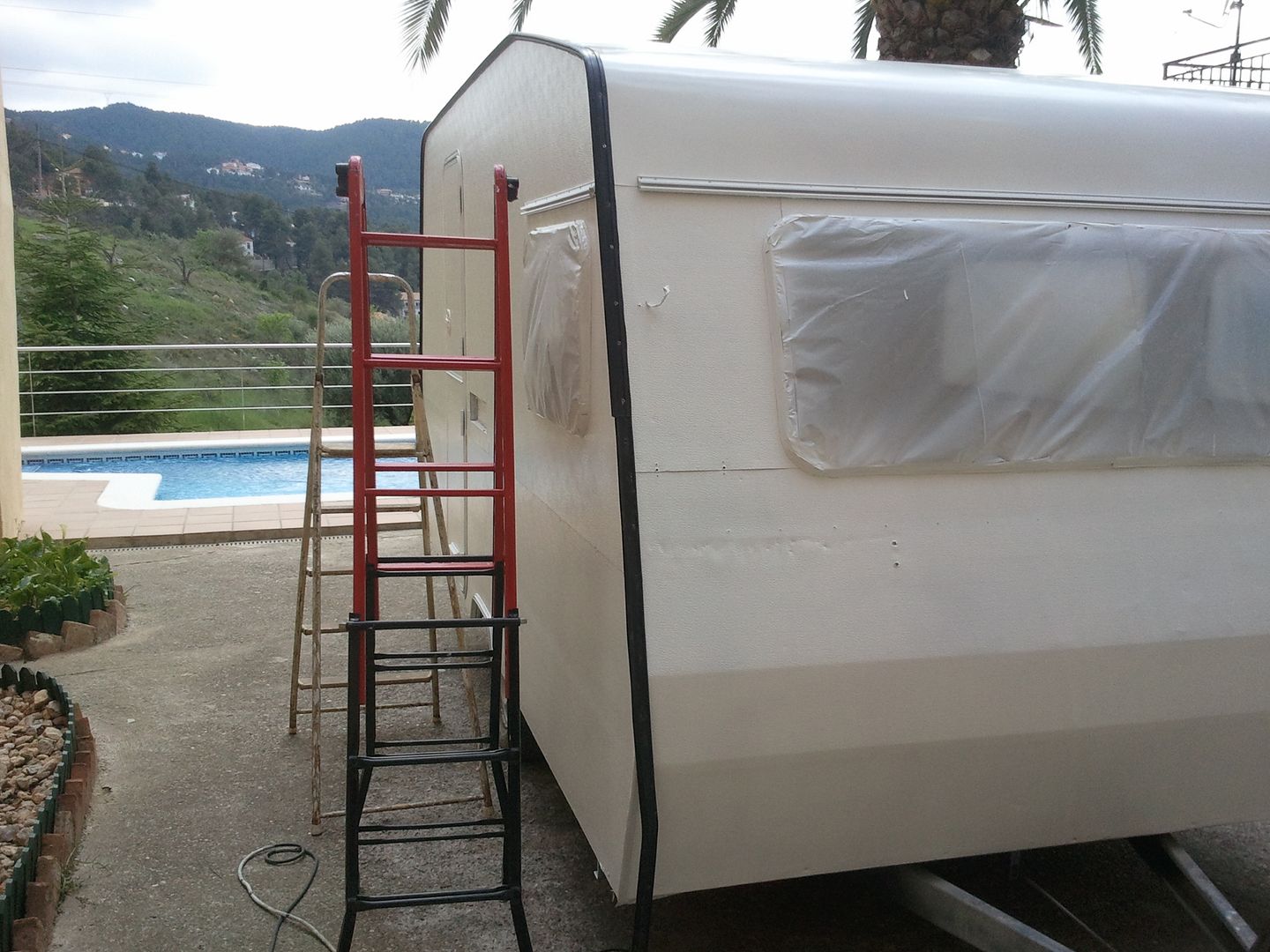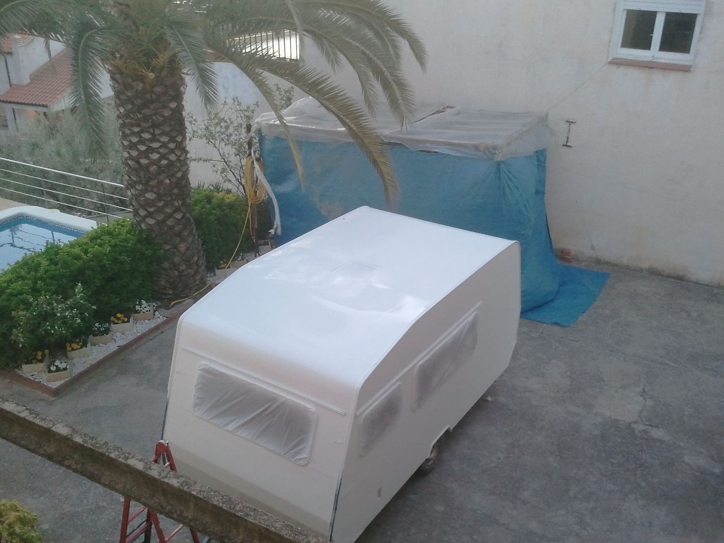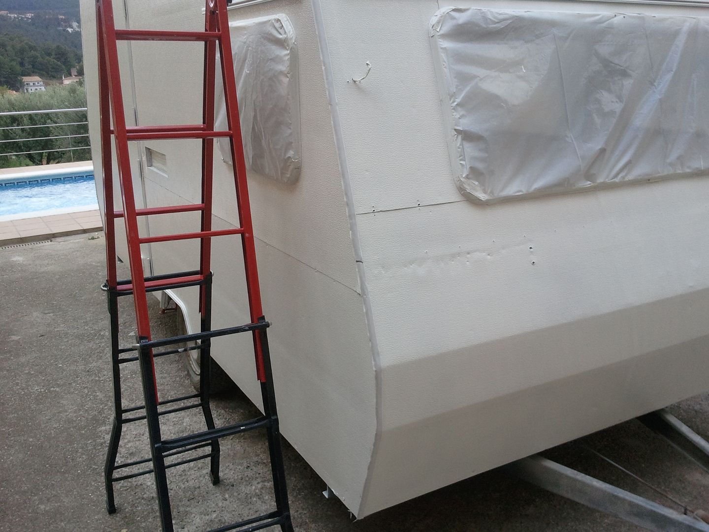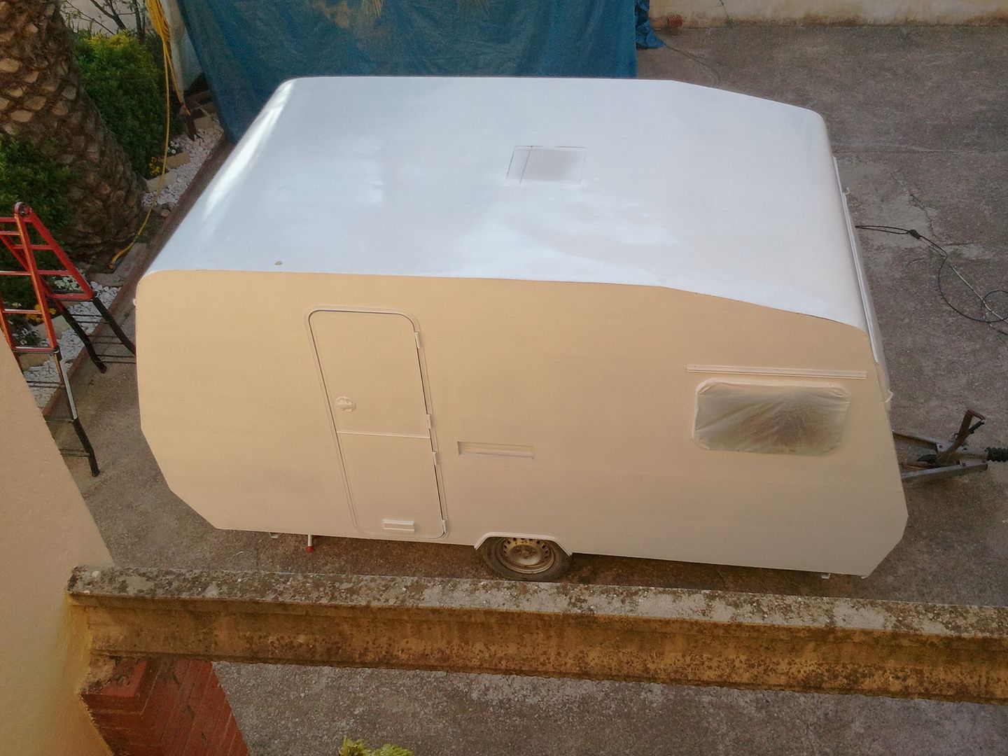 Hoy hemos dado la segunda capa de blanco!!! Me ha hecho un poco de viento y me quedado mas blanco yo que la caravana jajajaajajaja. Antes de la segunda capa he puesto las guias de avance.