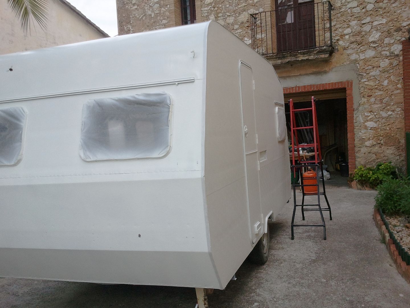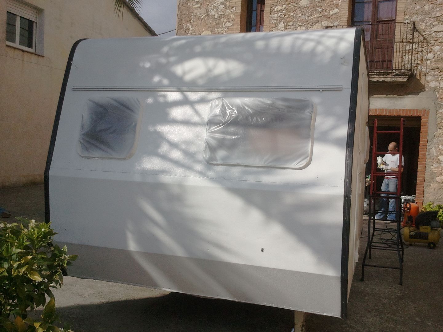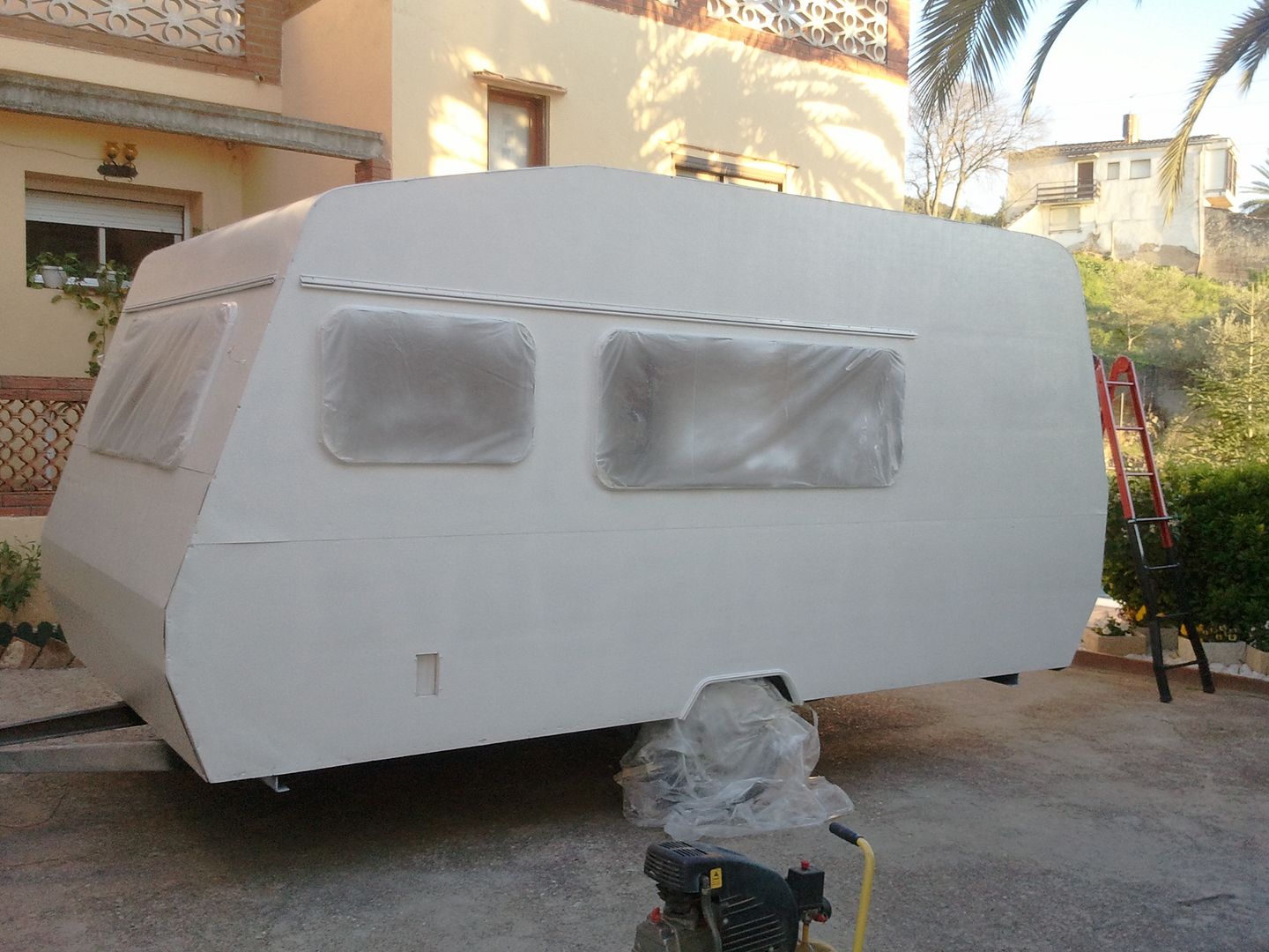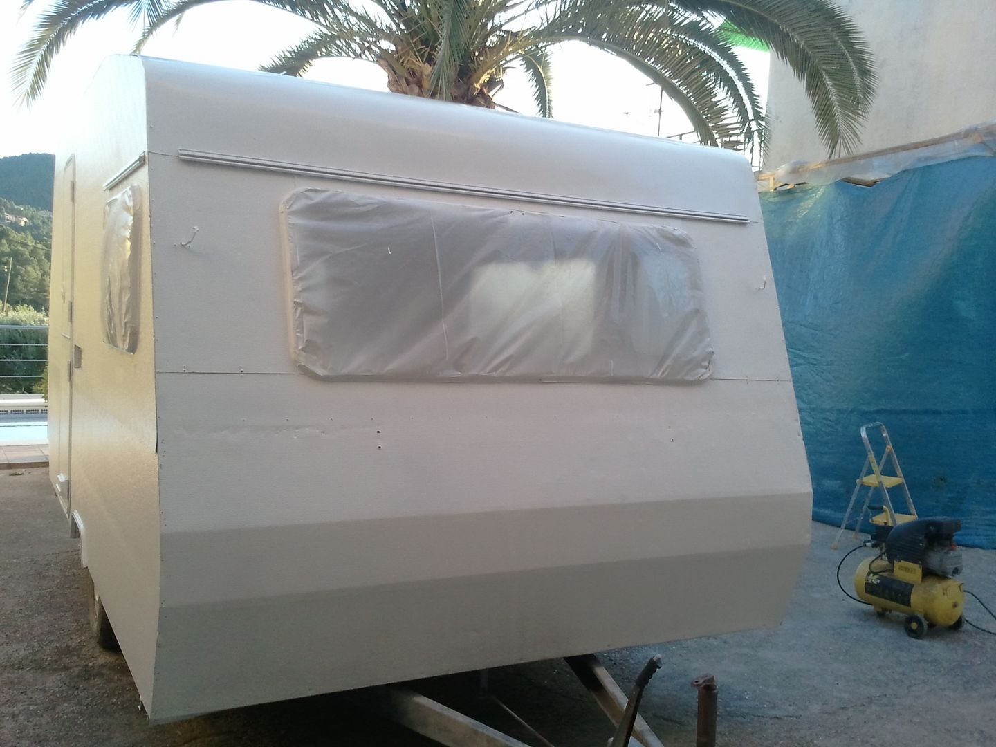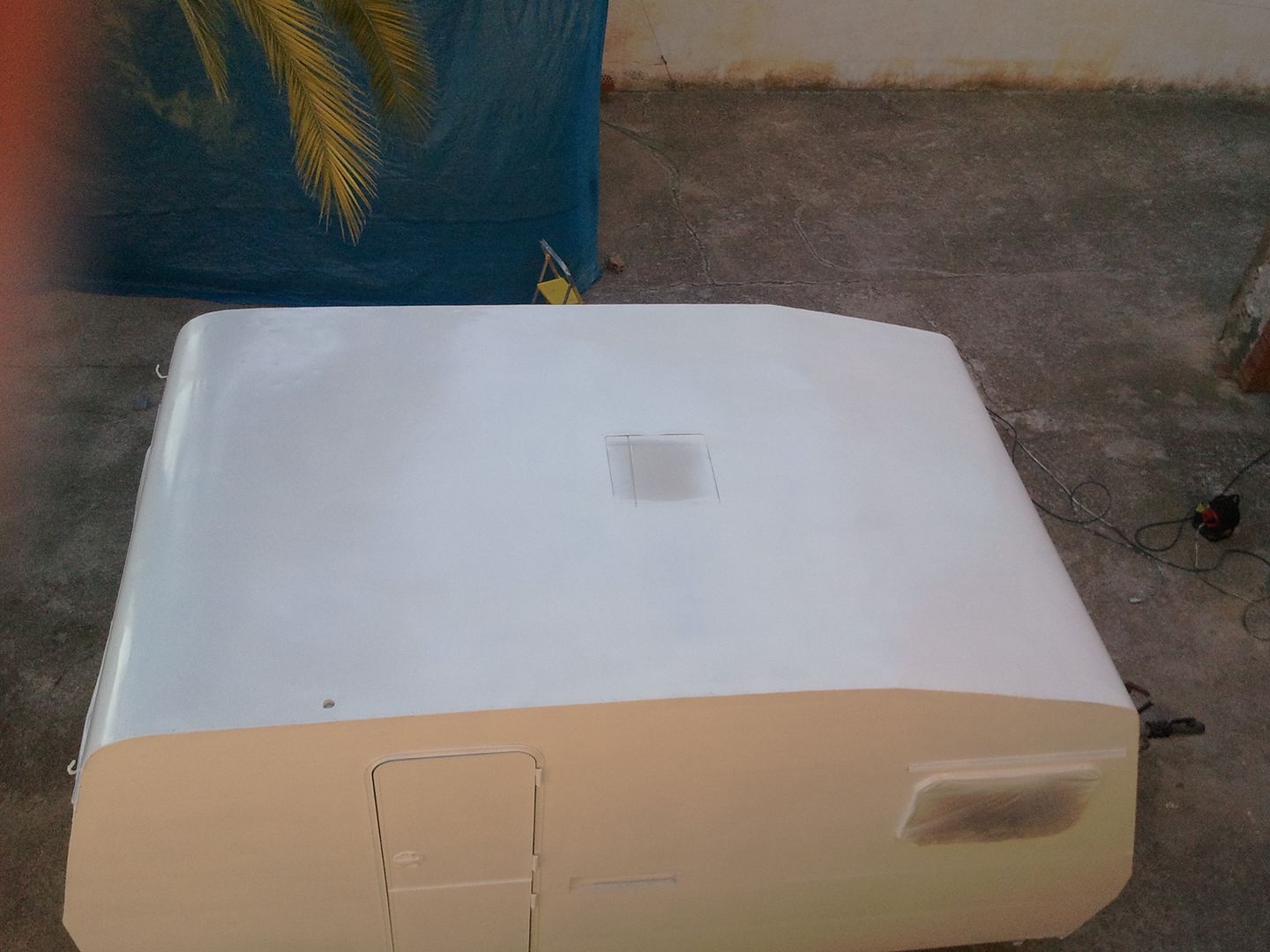 Hoy hemos dado la segunda capa de blanco!!! Me ha hecho un poco de viento y me quedado mas blanco yo que la caravana jajajaajajaja. Antes de la segunda capa he puesto las guias de avance.