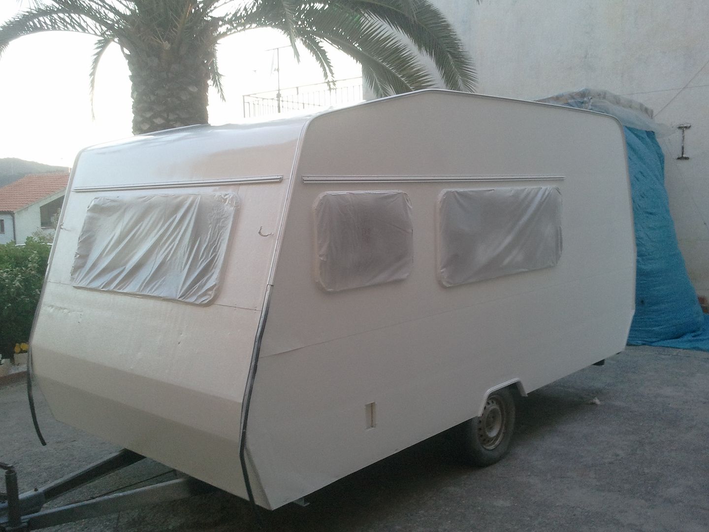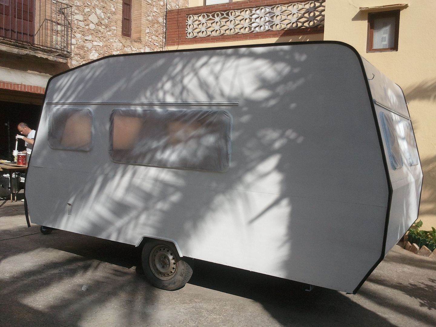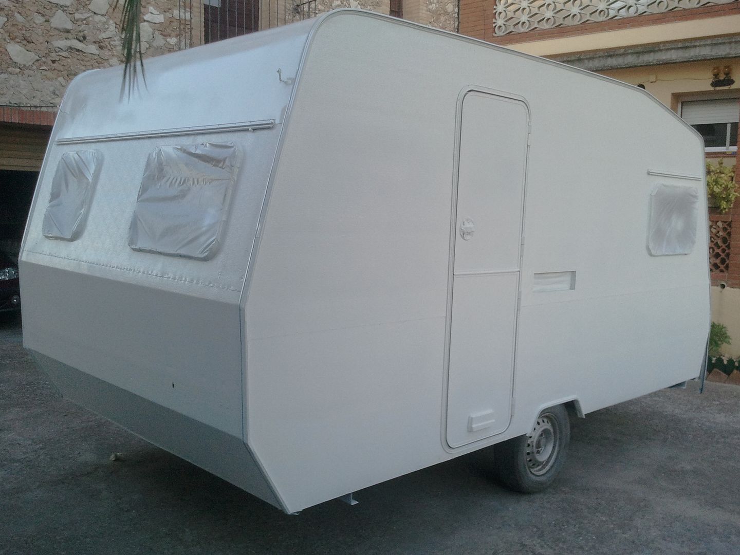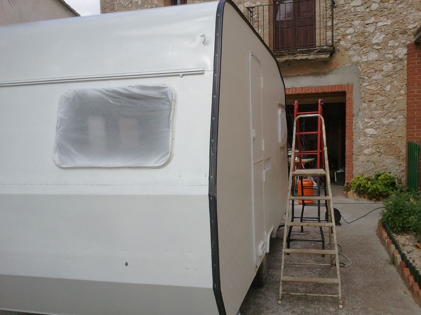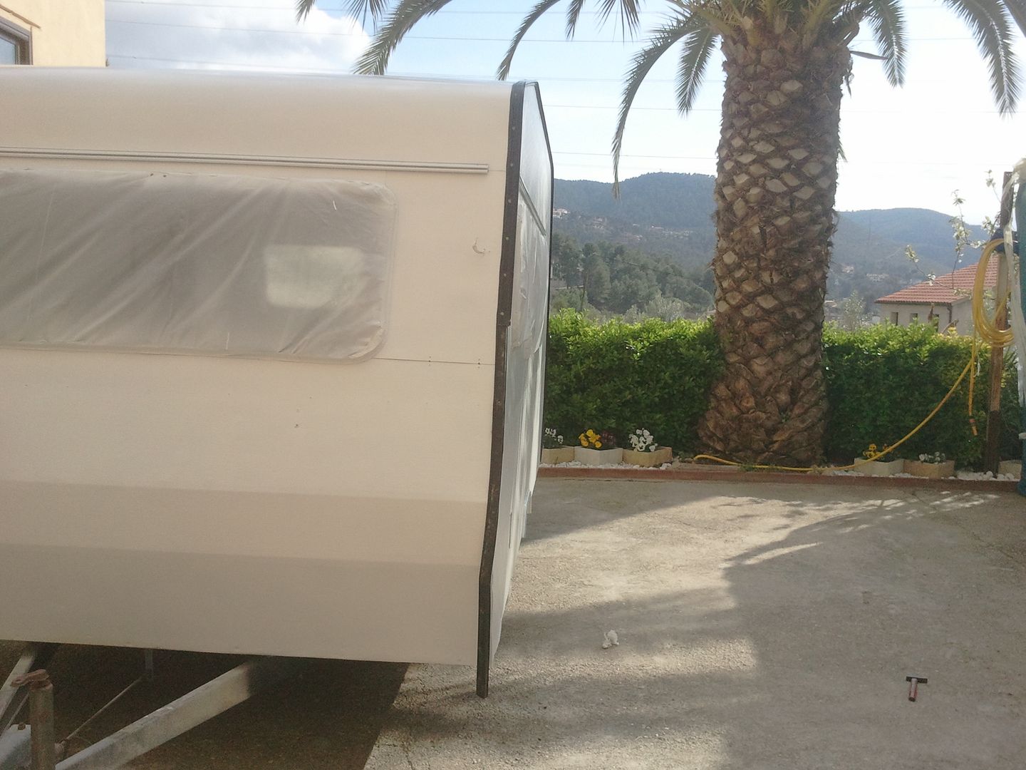 Hoy hemos dado la segunda capa de blanco!!! Me ha hecho un poco de viento y me quedado mas blanco yo que la caravana jajajaajajaja. Antes de la segunda capa he puesto las guias de avance.