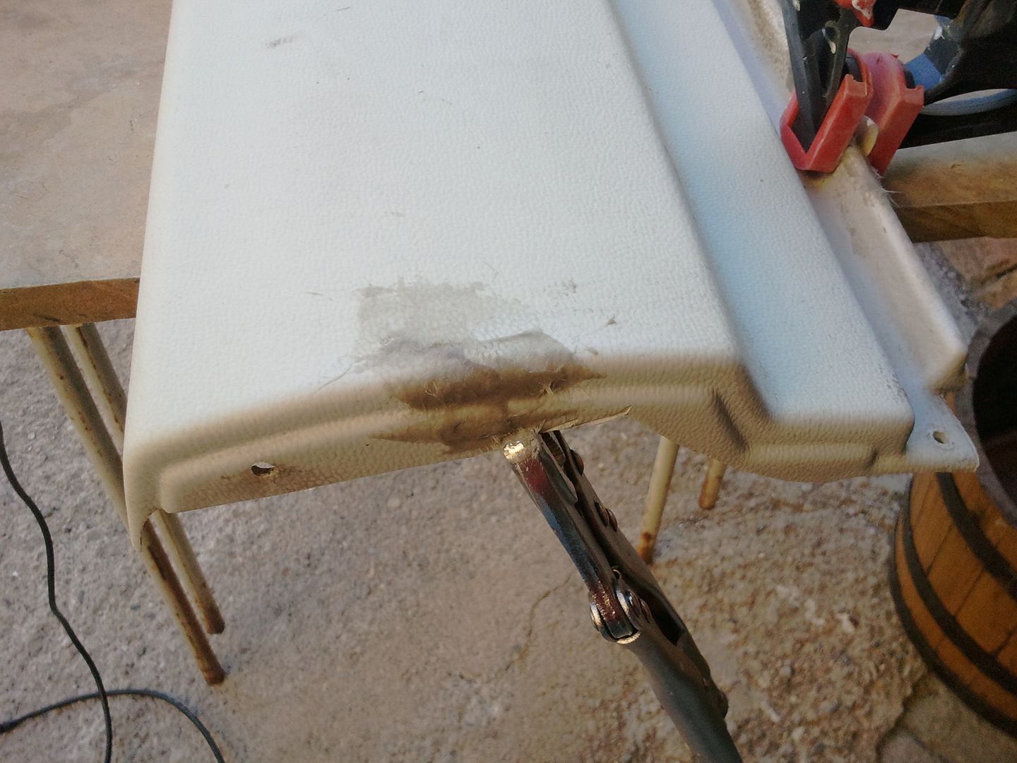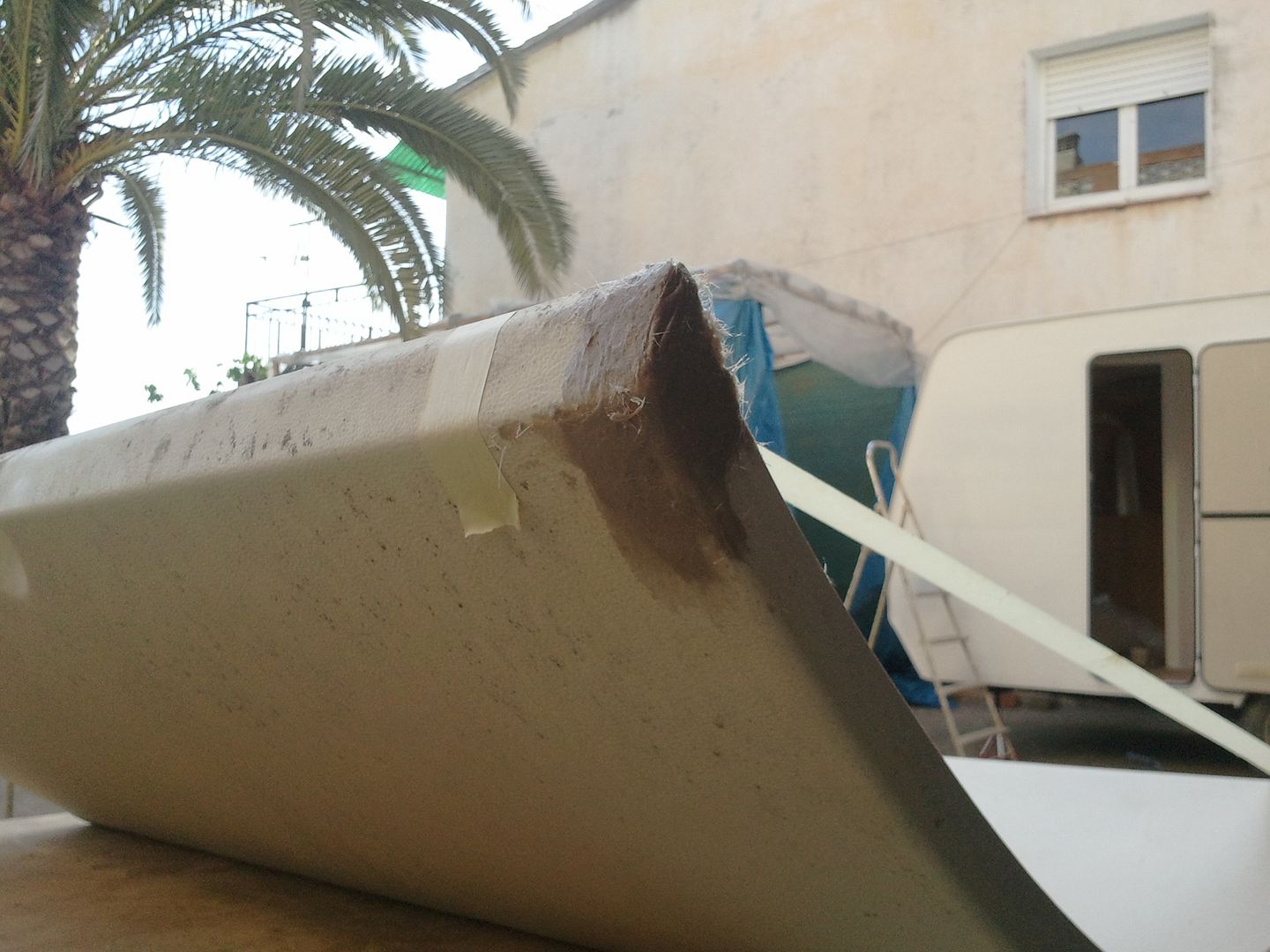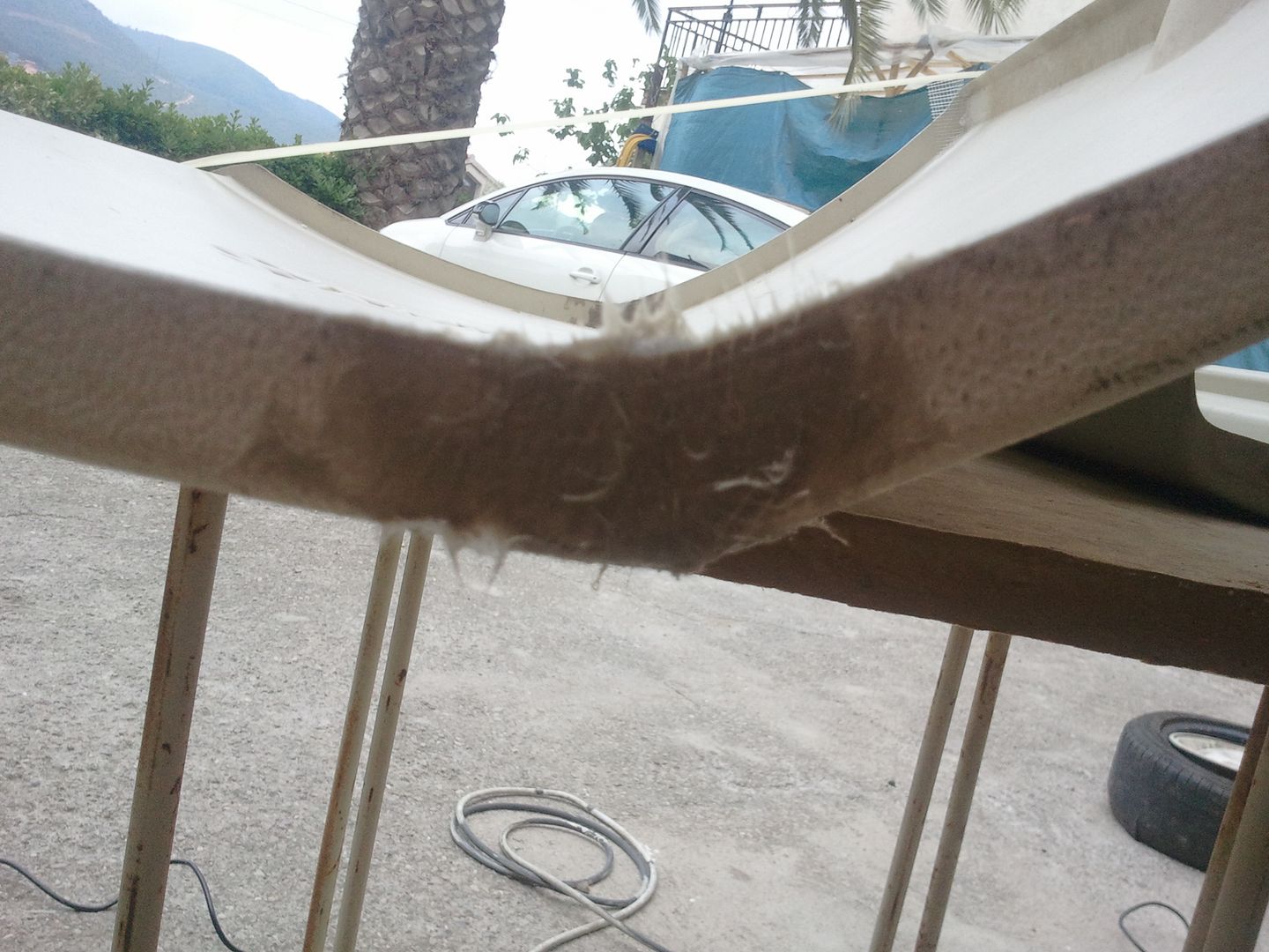 Hoy he estado lijando un trozo del arcon delantero, que enmasille con fibra de vidreo y reparando otros trozos.