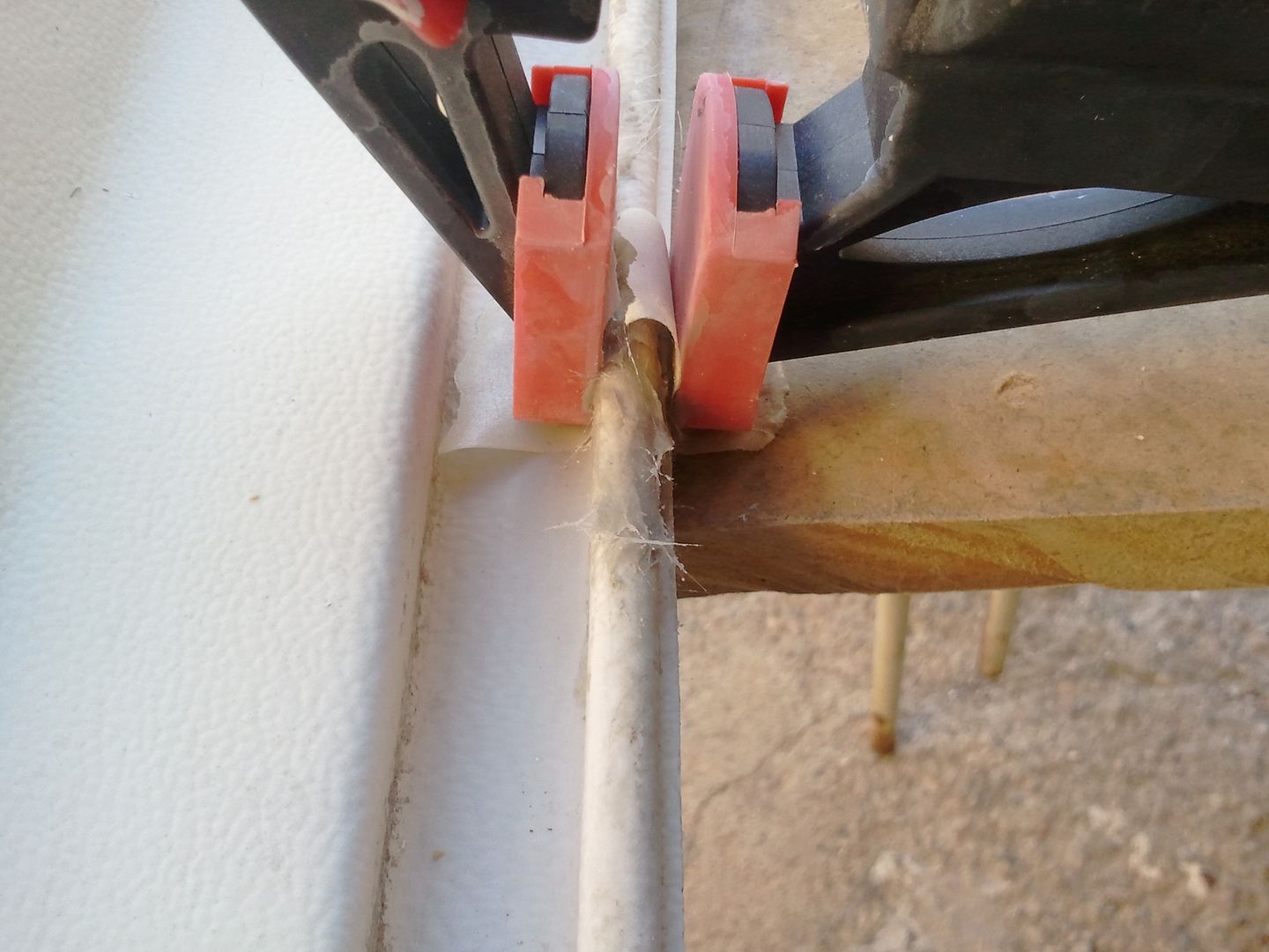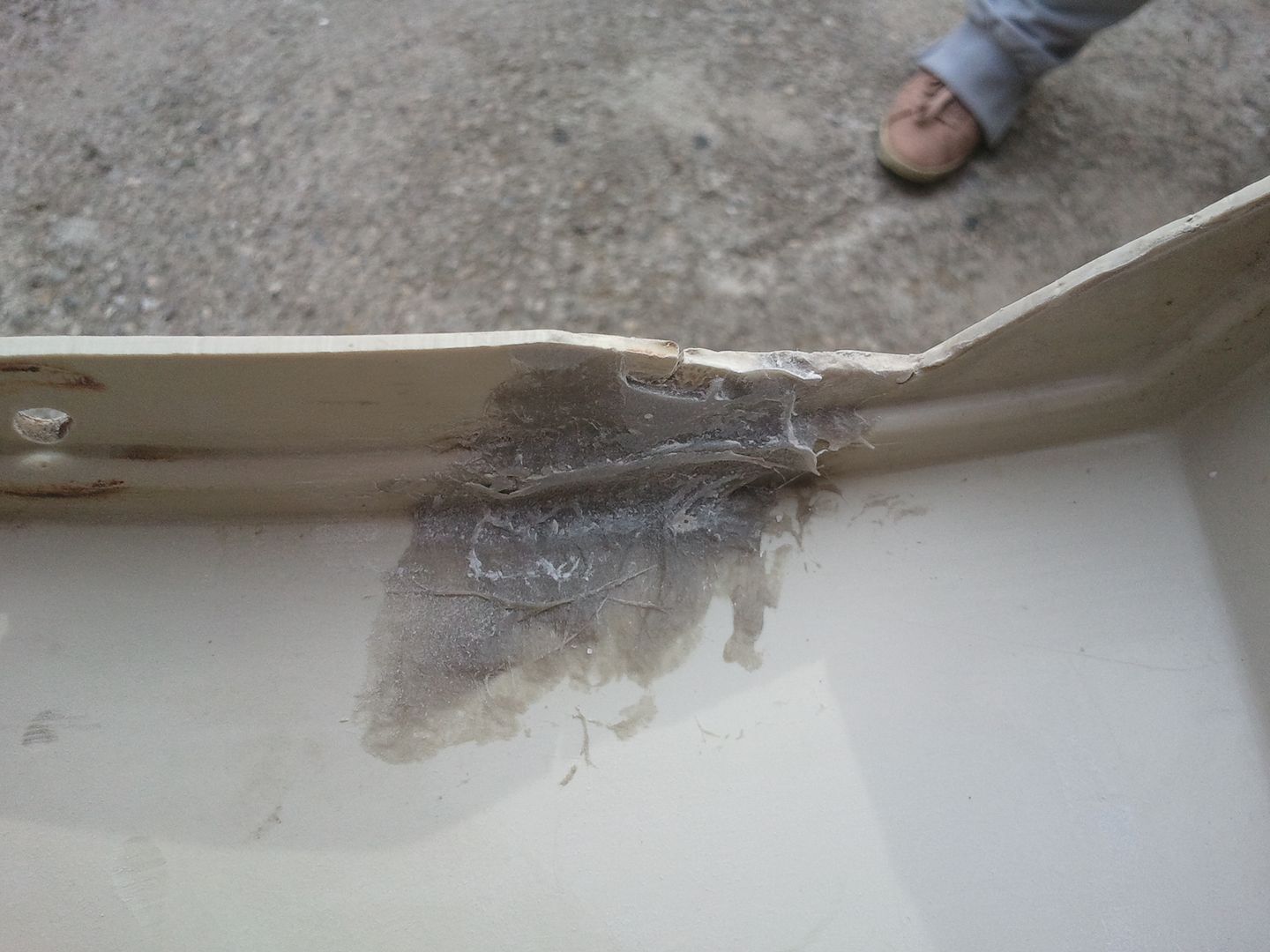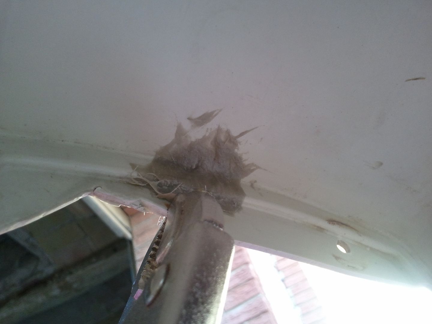 Aqui tambien he enmasillado el agujero de dentro del escape de la nevera, que solo lo tenia por fuera!