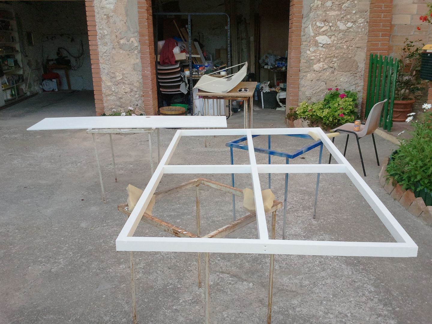 Mientras enmasillaba yo la mujer le daba la segunda capa al somier y a la puerta del WC
