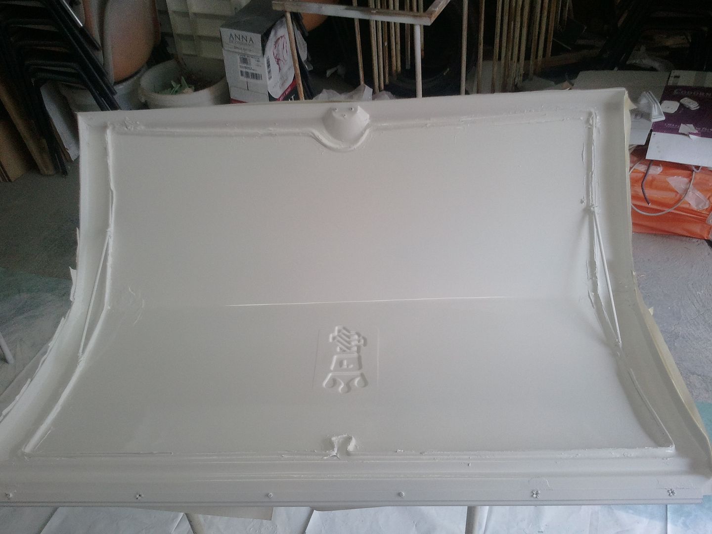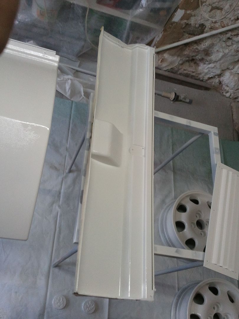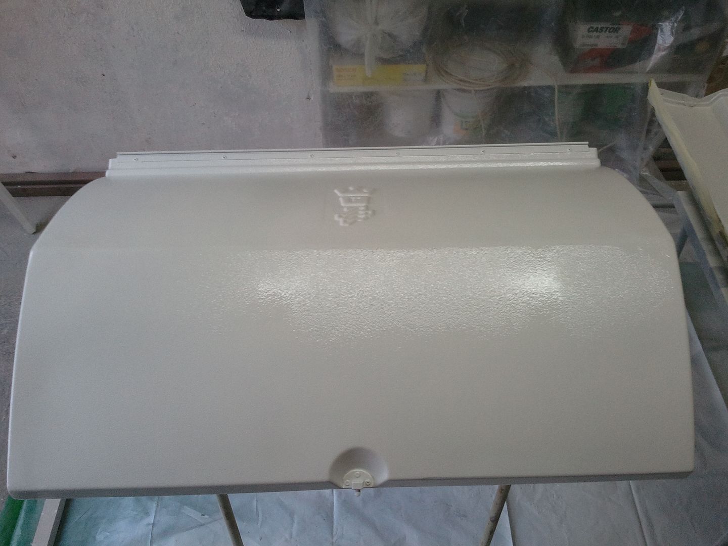 Bueno ya casi tengo terminado el arcon delantero. Hoy pinte el bajo de la tapa por detras y la tapa por delante, tambien a probeche para repasar la rejilla de la nevera.