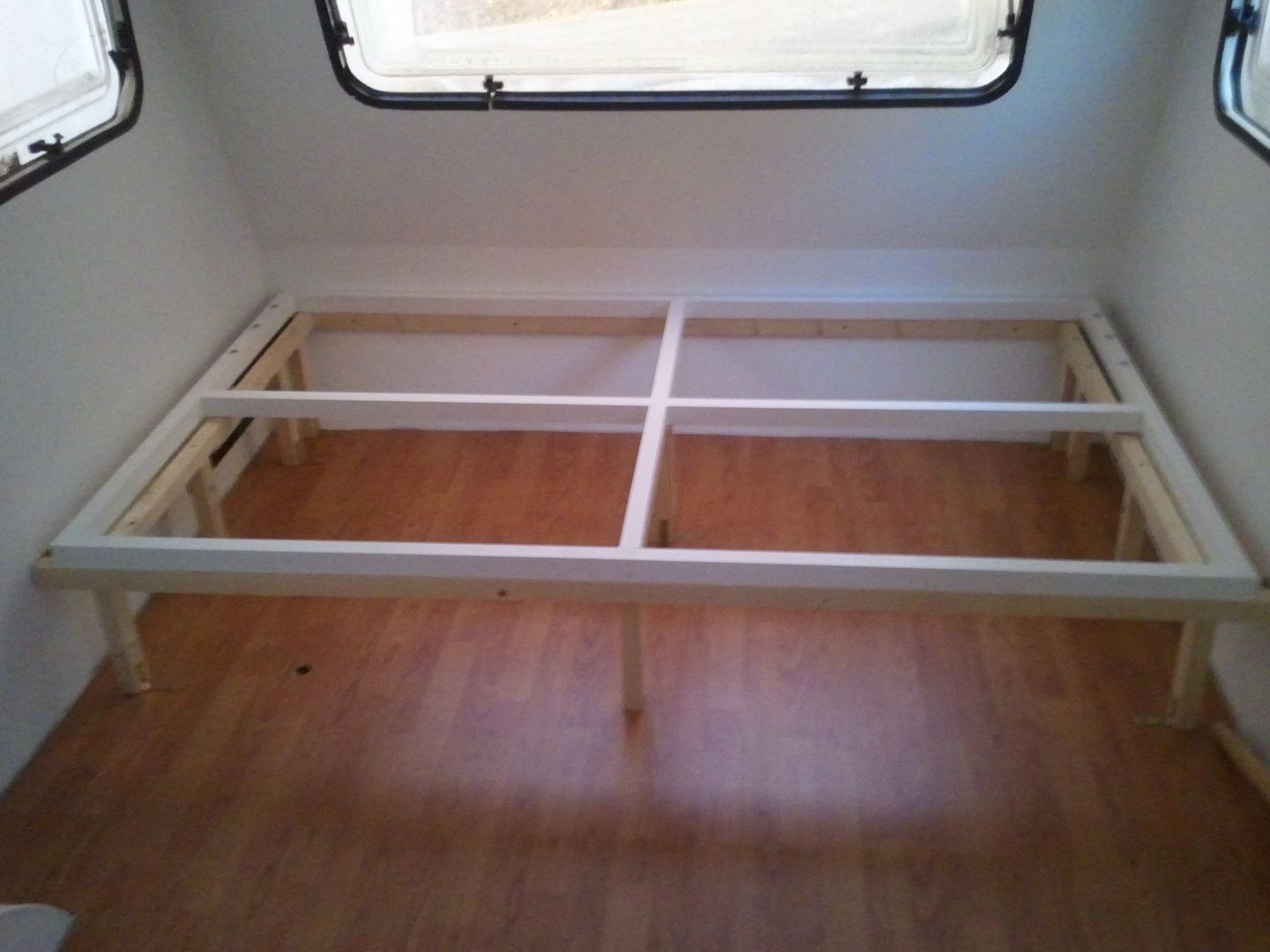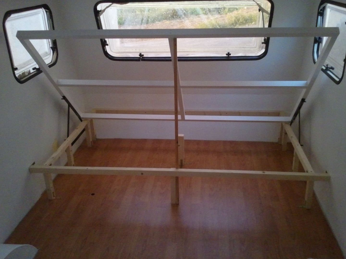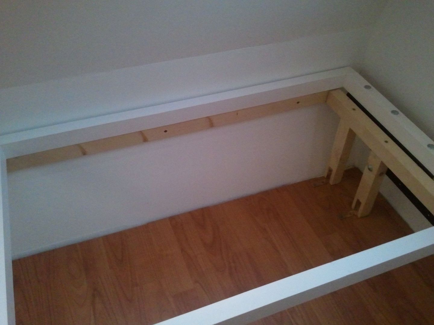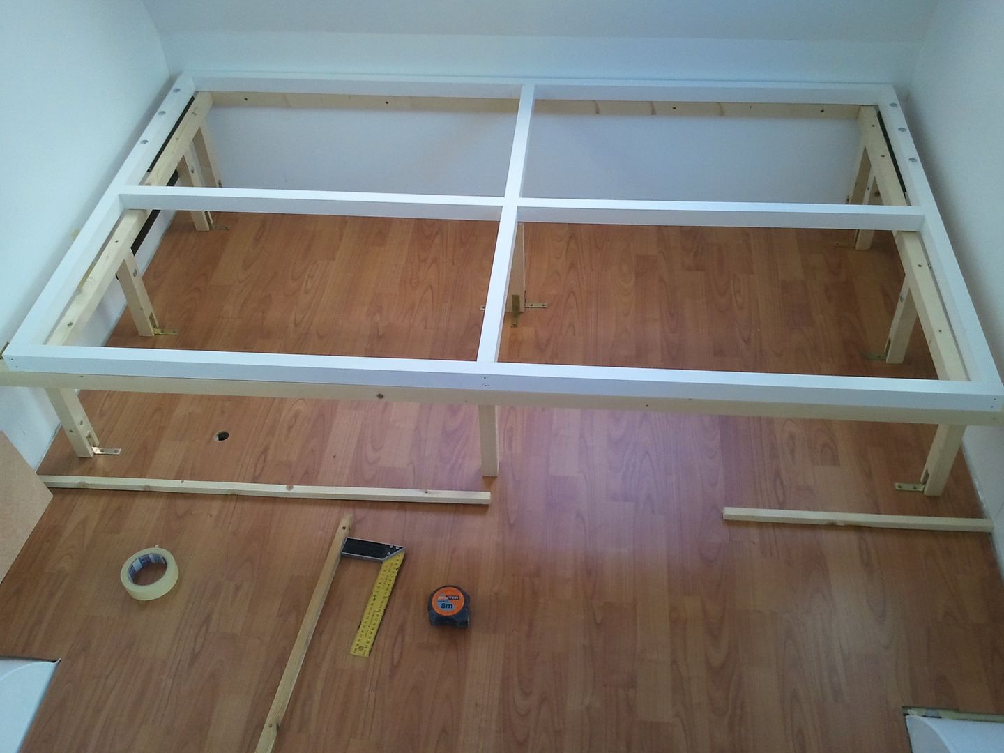 Aqui la cama levantada. Solo me falta poner las lamas pero eso mas adelante, ya que asi si tengo que pasar me es mas facil, que no con las llamas puestas.