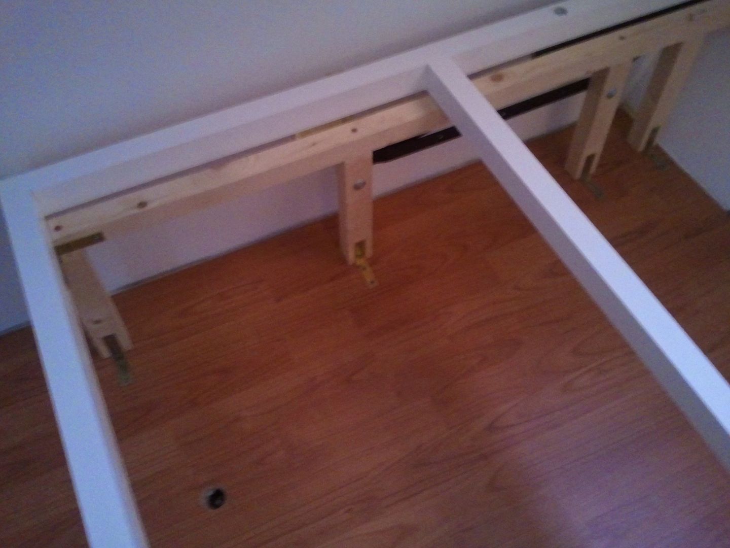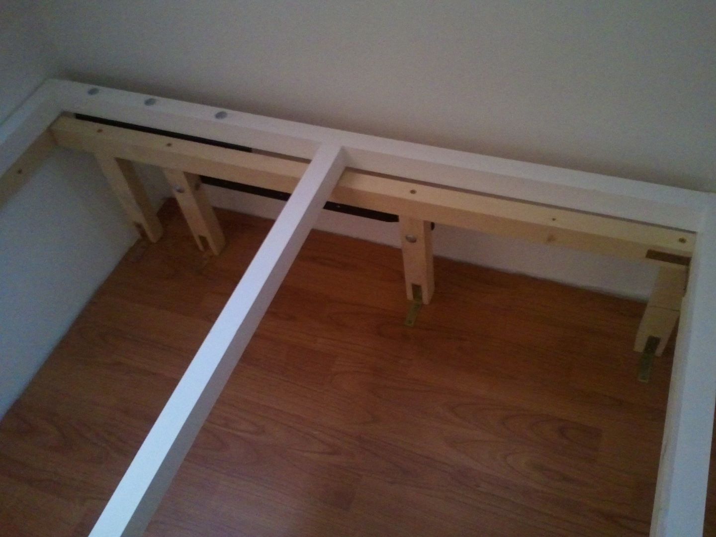 Aqui las patas que aguantaran la cama de matrimonio. He puesto los dos travesaños para sujetar bien la cama.