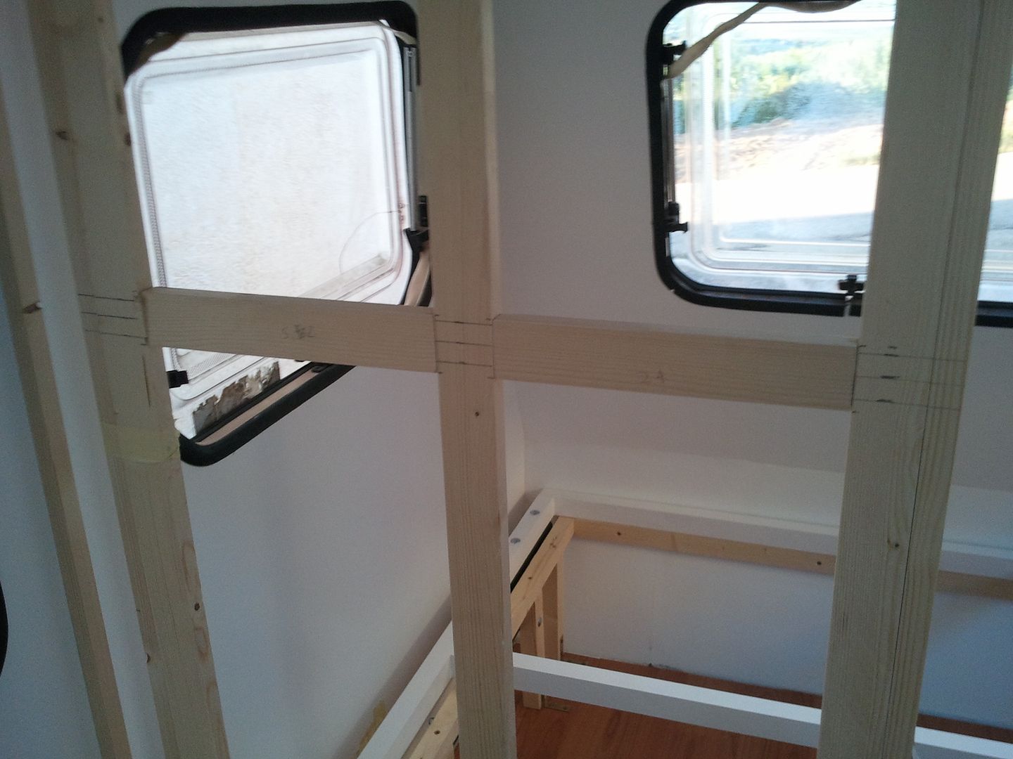 Aqui ira el otro liston de apoyo. Yo que tape los agujeros, por que no la iba a poner aqui la litera, pero al final ha habido un cambio de ultima hora, buenos desde que fui a la feria del Baricentro.