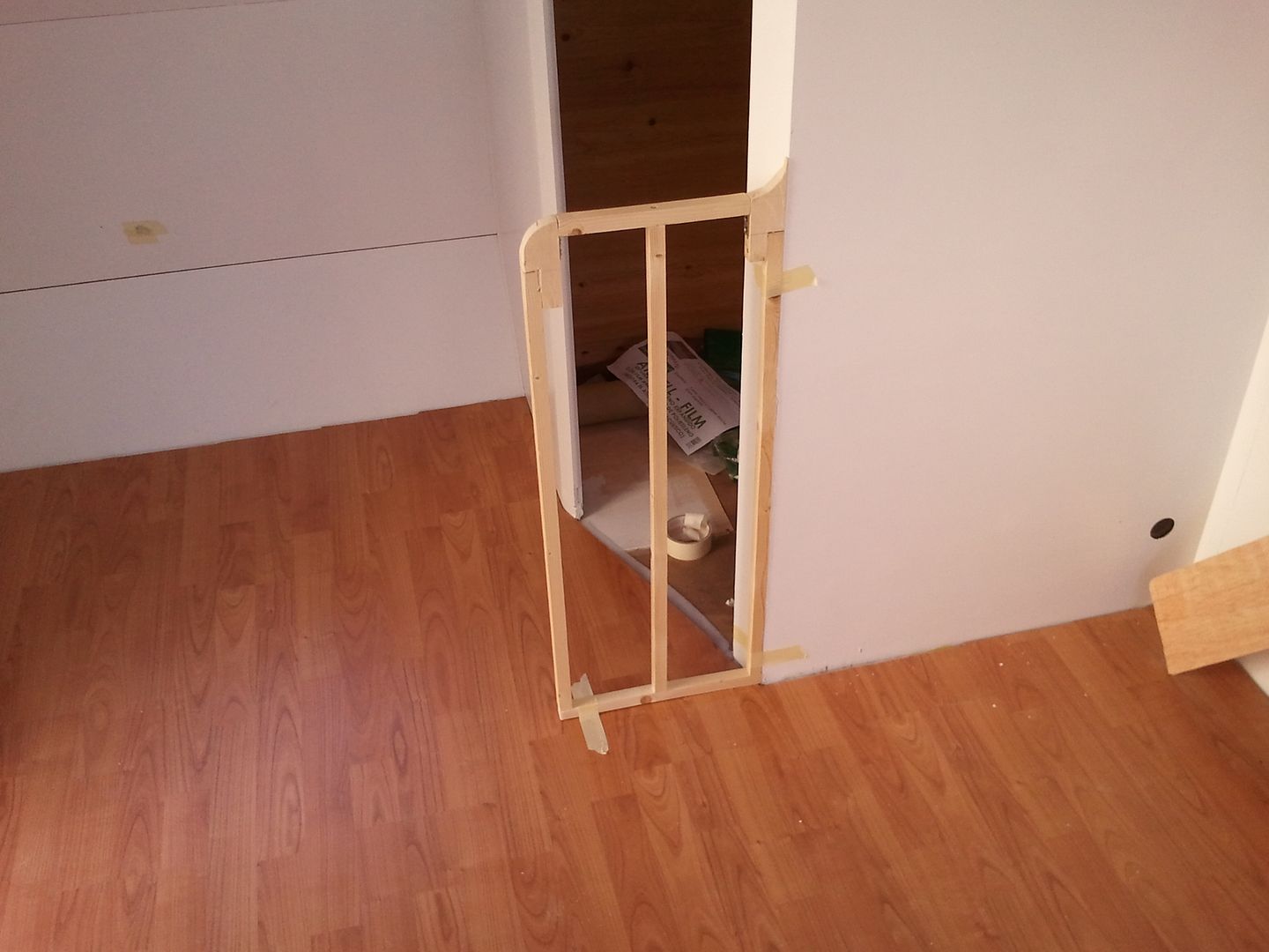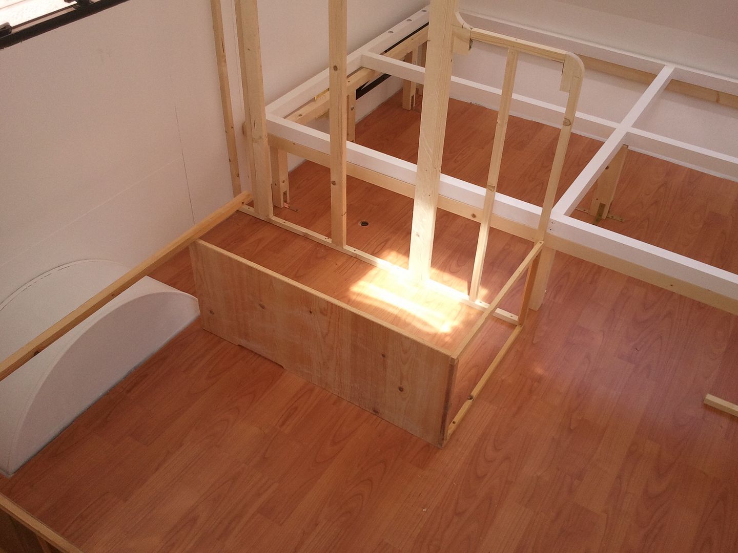 Aqui que puesto un liston de refuerzo, por que tendre que coge la cama, a su ves me sugeta el liston que como hay un nervio se me cayo al suelo mientras lo presentaba y se rompio. Como va coguido a la pared no lo he cambiado por no es necesario.