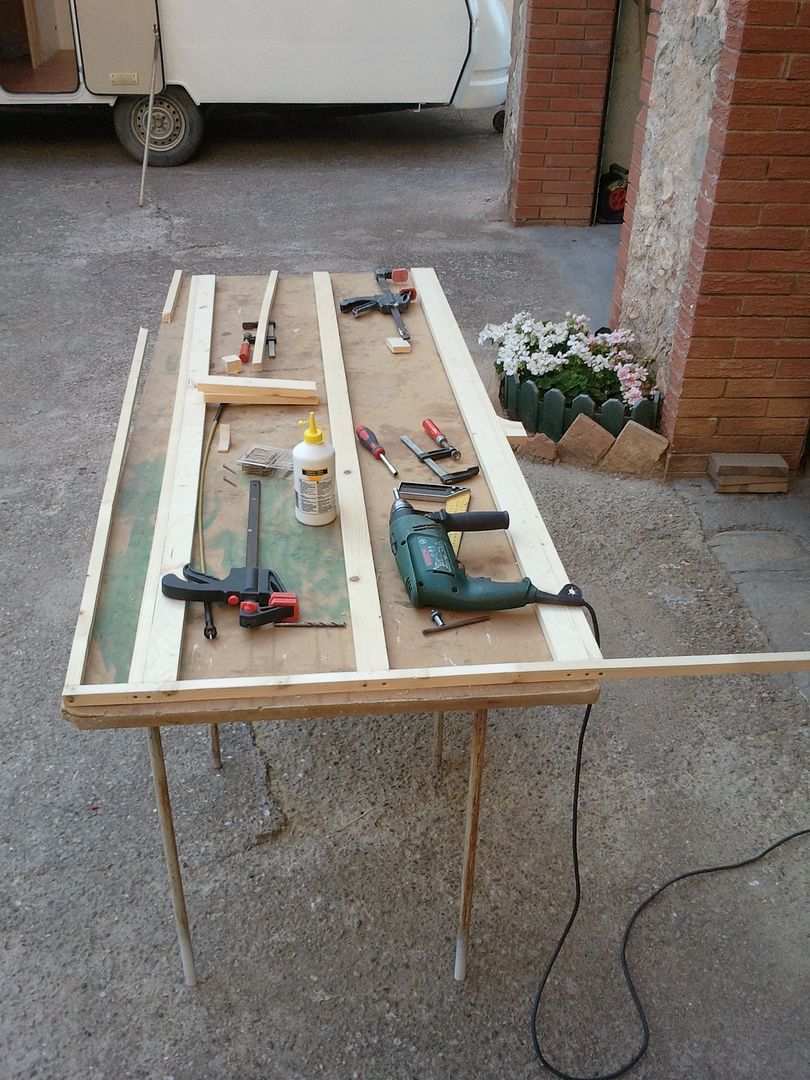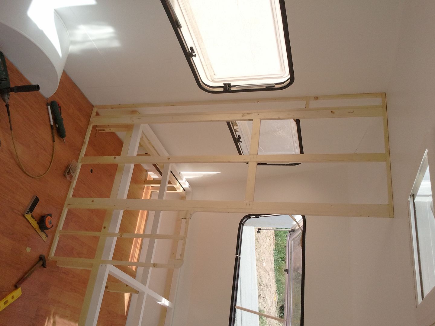 Despues de medir poner a sitio, etc cuando lo tube listo, empece atronillar la pared nueva a la caravana. Me ha quedado bastante bien!!