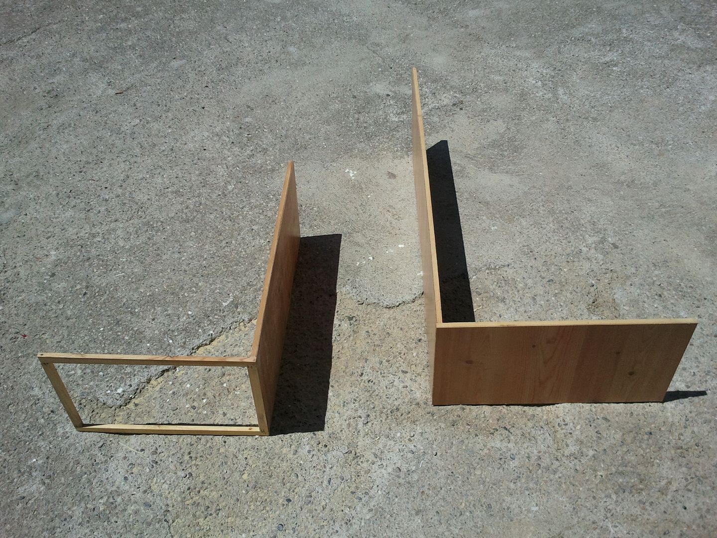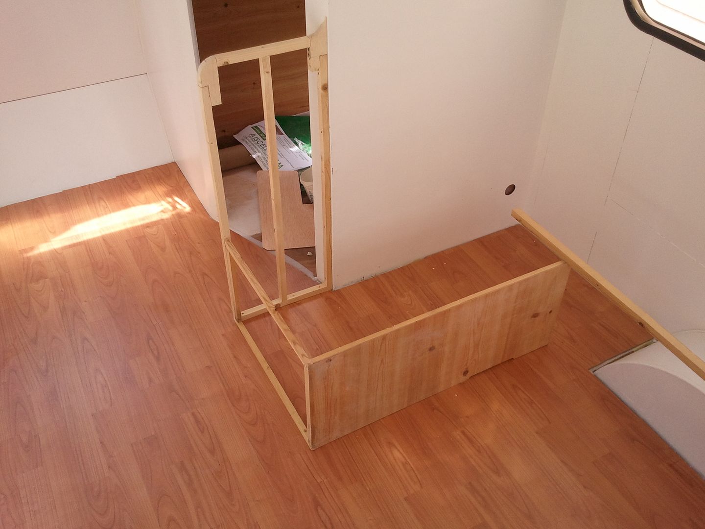 Esto es el antiguo arcon que habia donde ahora esta la cama fija. Es lo unico que traia la caravana, si os acordais. Pues lo he aprobechado, ya que no esta la cosa para derochar nada. El de la izquierda ya esta cortado a la nueva medida, y el de la derecha es el original.