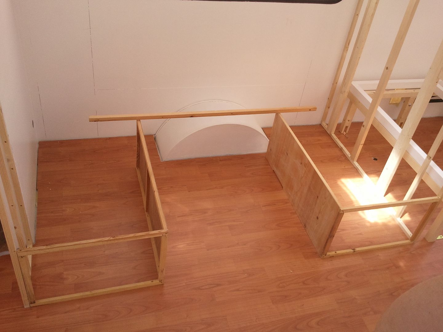 Pues en la caravana. Asi iran colocados, ya que hare un salon en U finalmente. El contrachapado de alante se lo he quidado, por que es posible que ponga unos cajones, como los del brico que hay por el foro. Ademas un contrachapado estaba ajugereado.