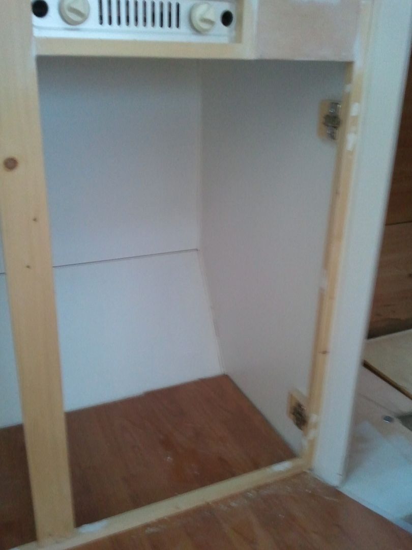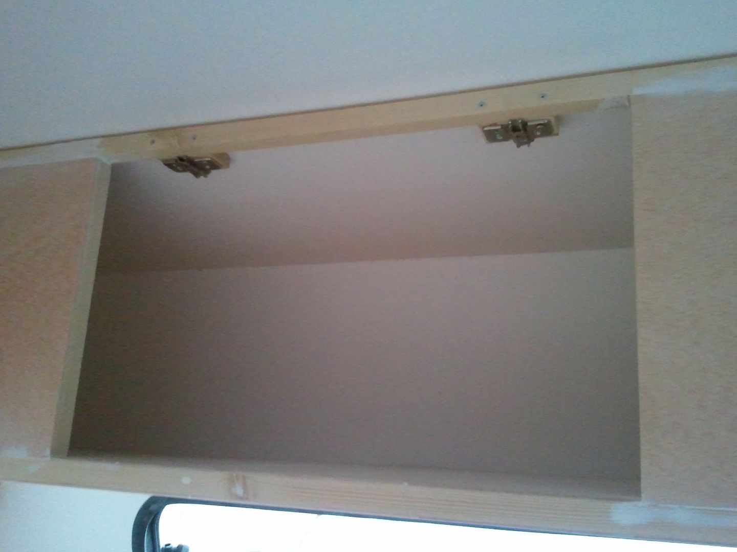 En el armario de abajo le puesto este, atornillado por alante y pegado a la pared con cola blanca.