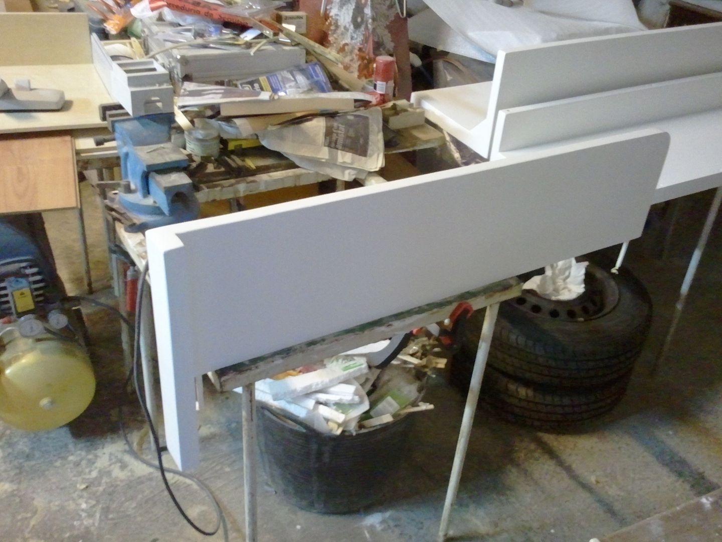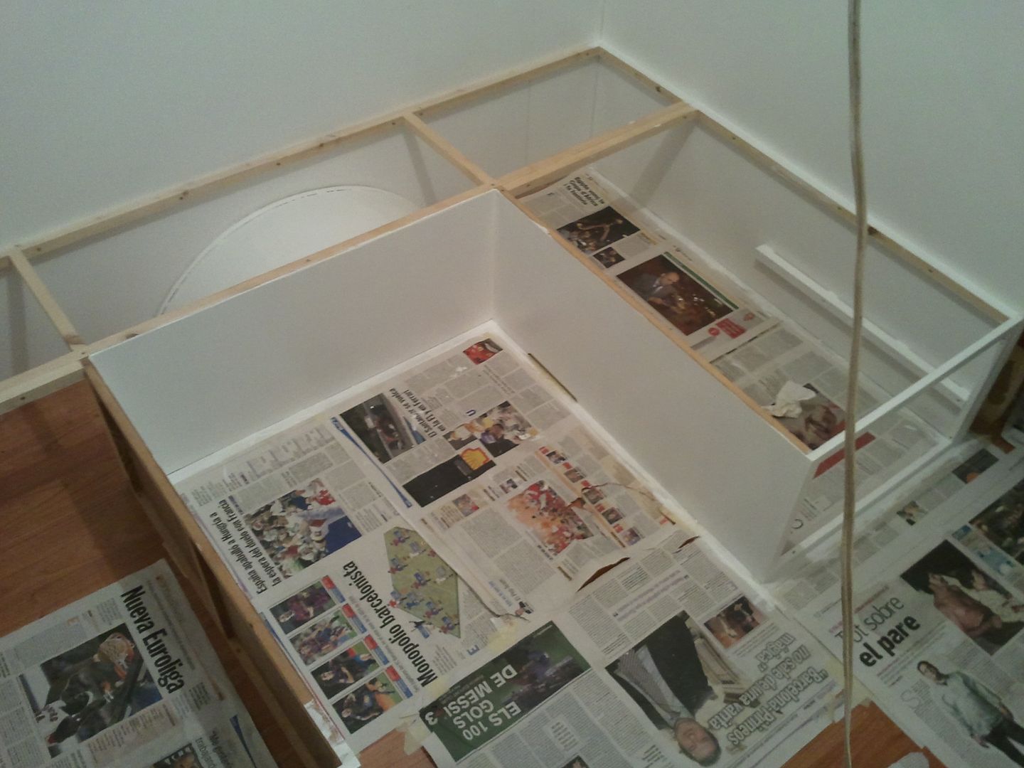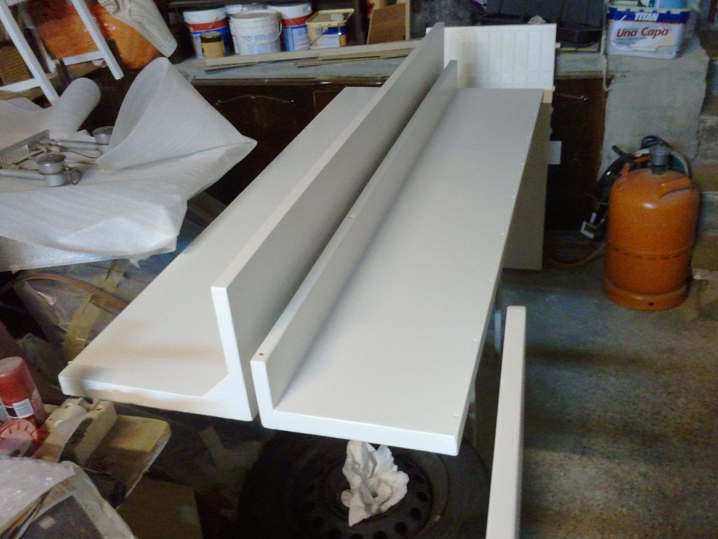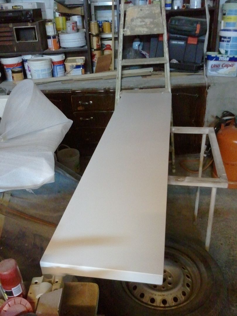 Luego le dado la primera capa de blanco a la litera por debajo que quedo por pintar y los laterales de los soportes y el bajo de la barandilla.