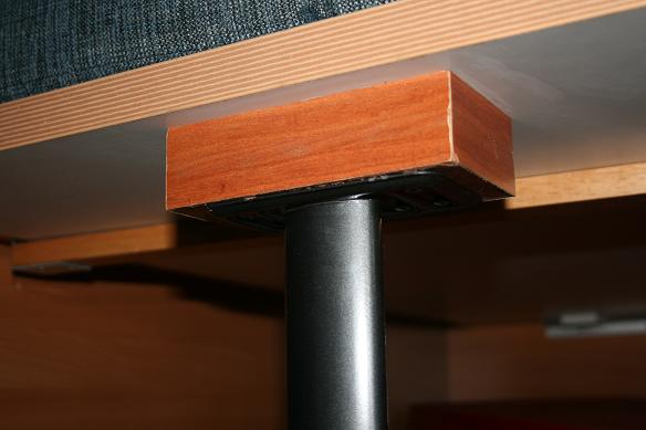 Veo mayor problema al "juego" que puede tener la mesa respecto a los soportes, ya que hay una separación de los bordes de las tapas a sus relativos cantos de la mesa que propician un movimiento excesivo. Pero ese es otro "apaño" que ya os pondré.