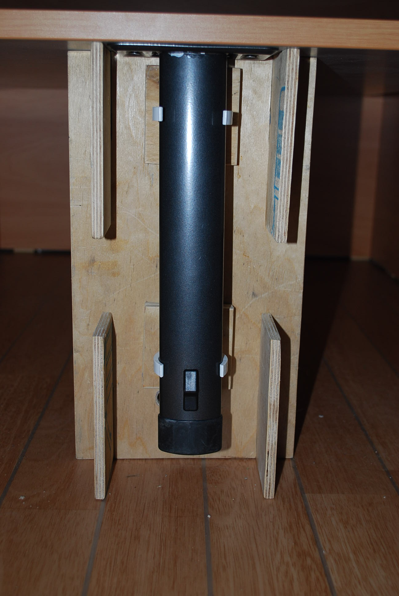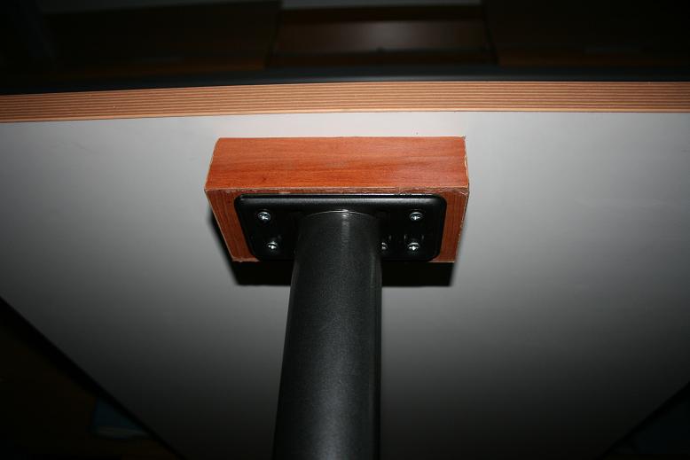 Quiero independizar este sistema de pata de el de soportar la mesa. Si el día menos pensado das un puntapié a la pata estando montada, como comedor o como dormitorio sin peso encima de la mesa, los tirafondos salen hacia a fuera sin que puedas en adelante volver a atornillarlos en el mismo lugar.