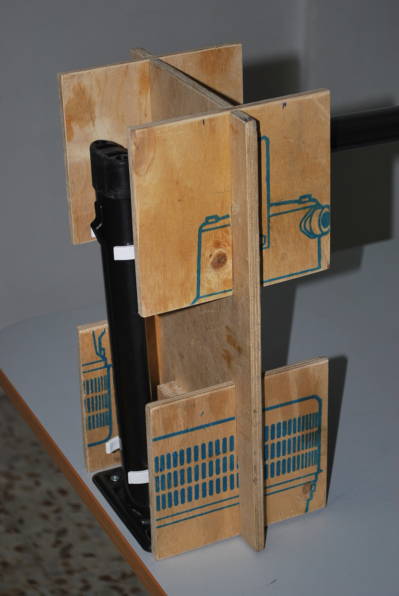 Se trata de formar una estructura ensamblada de trozos de plafonado ( esta madera es muy resistente por estar formada por varias capas contrapuestas de láminas de madera ).