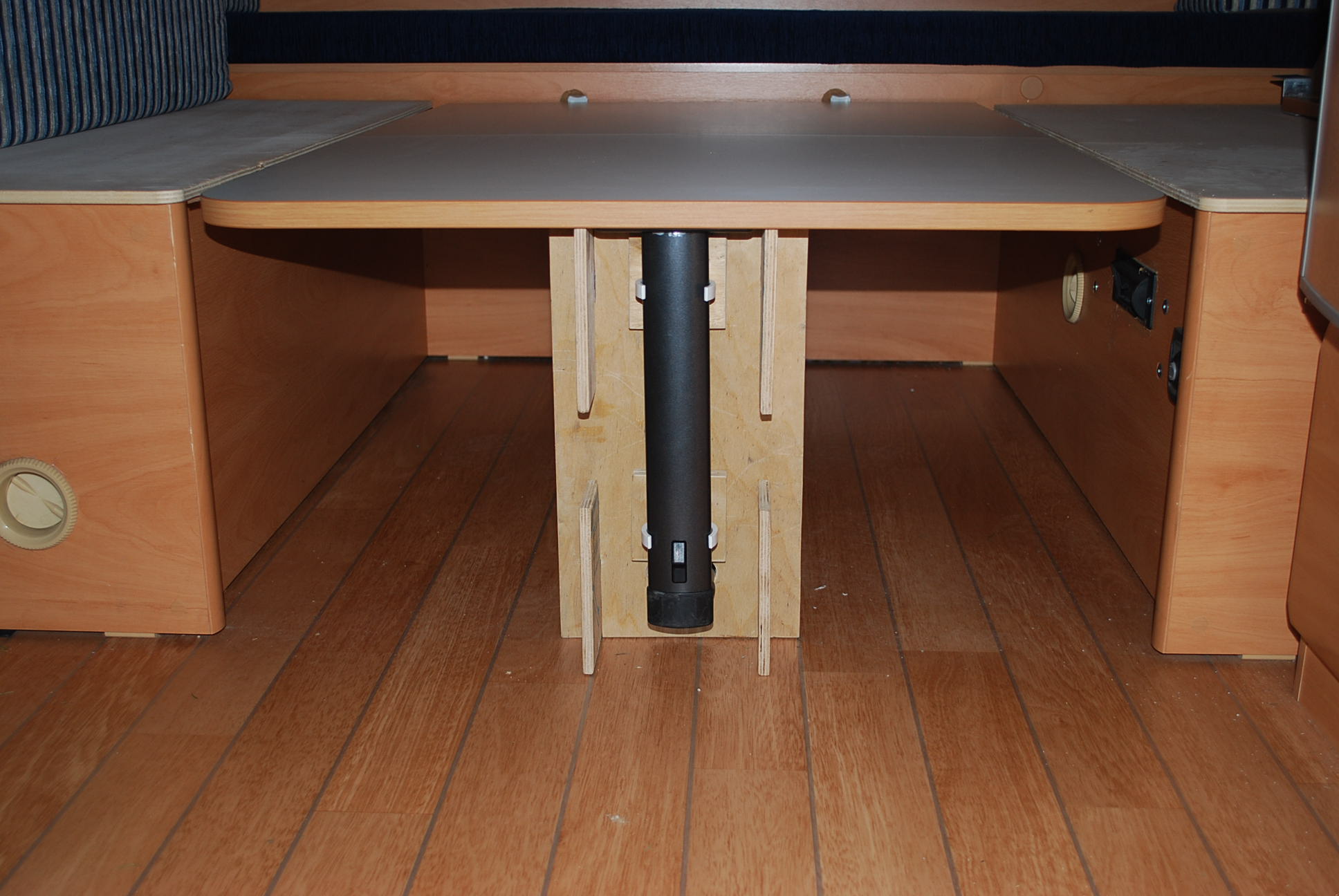 Como muchos tenemos este mismo problema con la pata de la mesa grande yo aconsejo a todos los que tienen la caravana con menos de dos años ( en garantía ) que se la lleven a su concesionario Sun Roller para que ellos se busquen la vida, por supuesto gratis. Por mi parte ( ya lo comenté en otro post ) a mí, Comercial Caravaning en Alcalá de Henares me lo "apañó" en garantía con una chapucilla que funciona a la perfección. No tengo fotos disponibles pero si a alguien le interesa puedo hacerlas.
