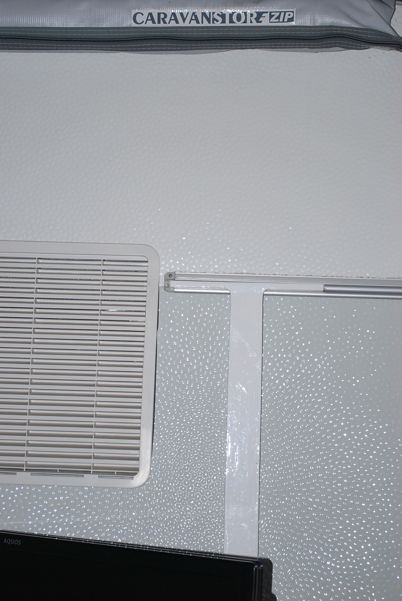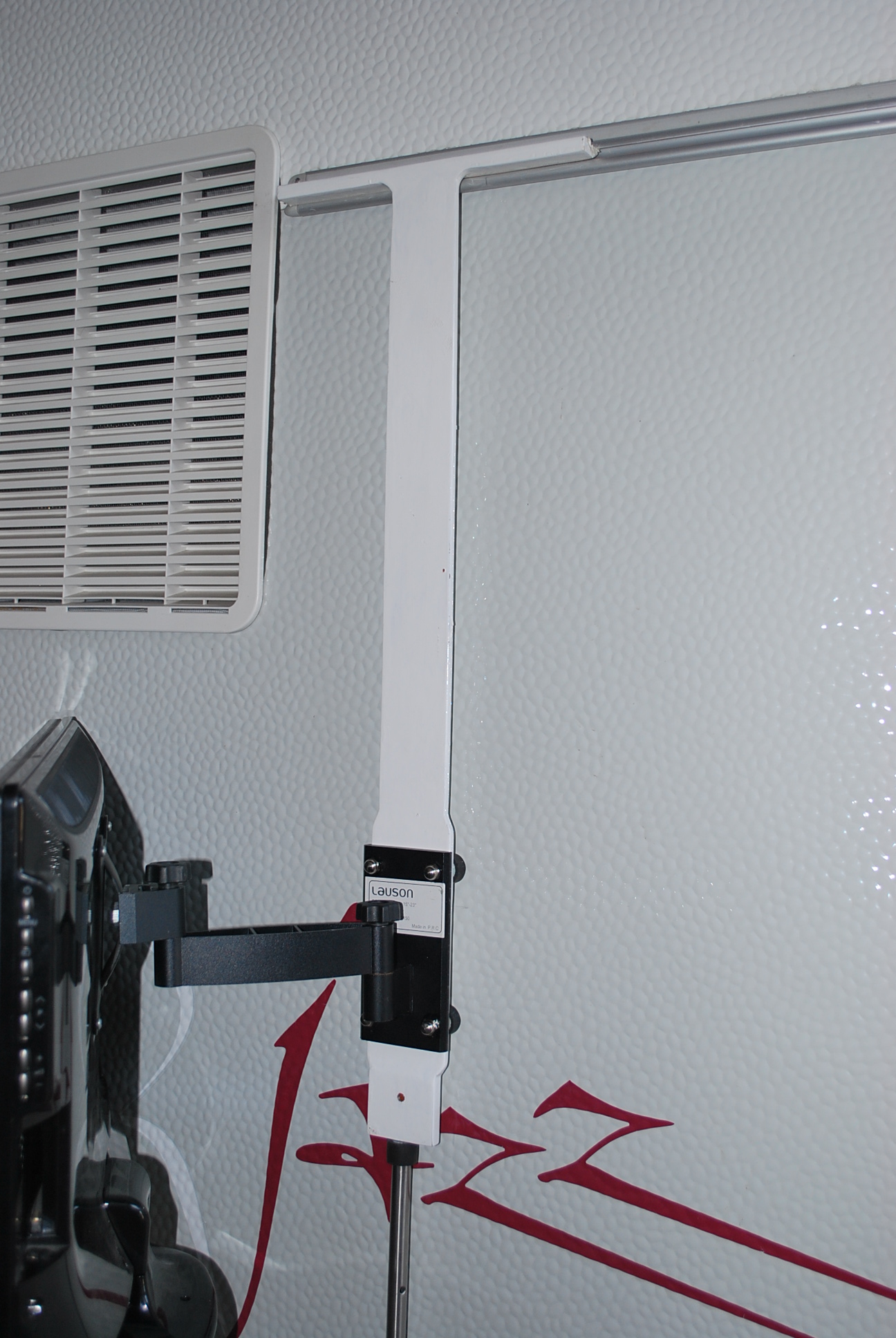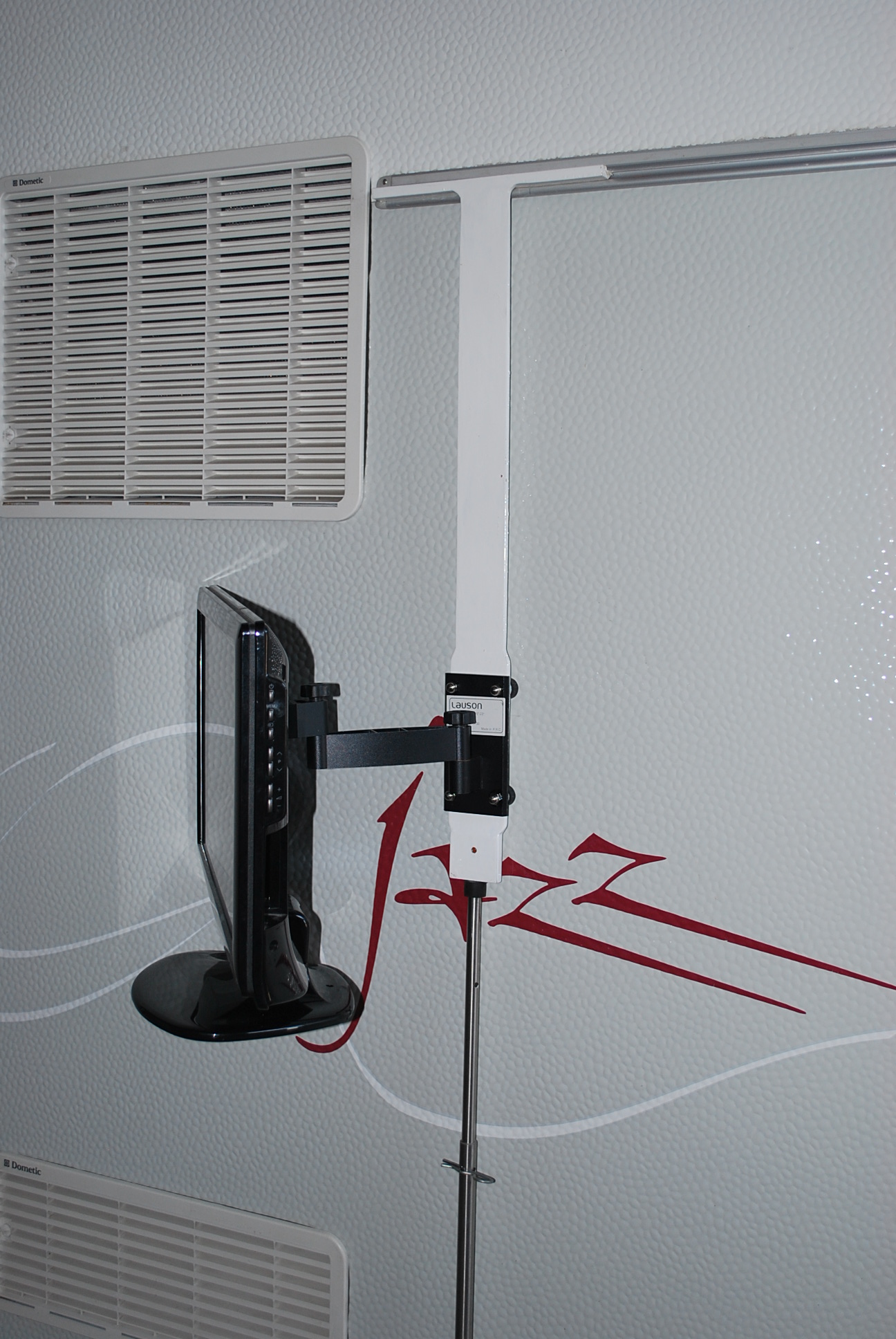 Hace ya un tiempo pense en cambiar este soporte por otro por 2 razones. Menor peso y volumen, pero que me siguiera valiendo si utilizo el Caravanstore. Utilizando la articulacion que venia en el embalaje del soporte pense que la tv volveria a estar en una posicion por debajo de la rejilla del frigo, aunque parte del soporte quedara fuera del cerramiento del CS.