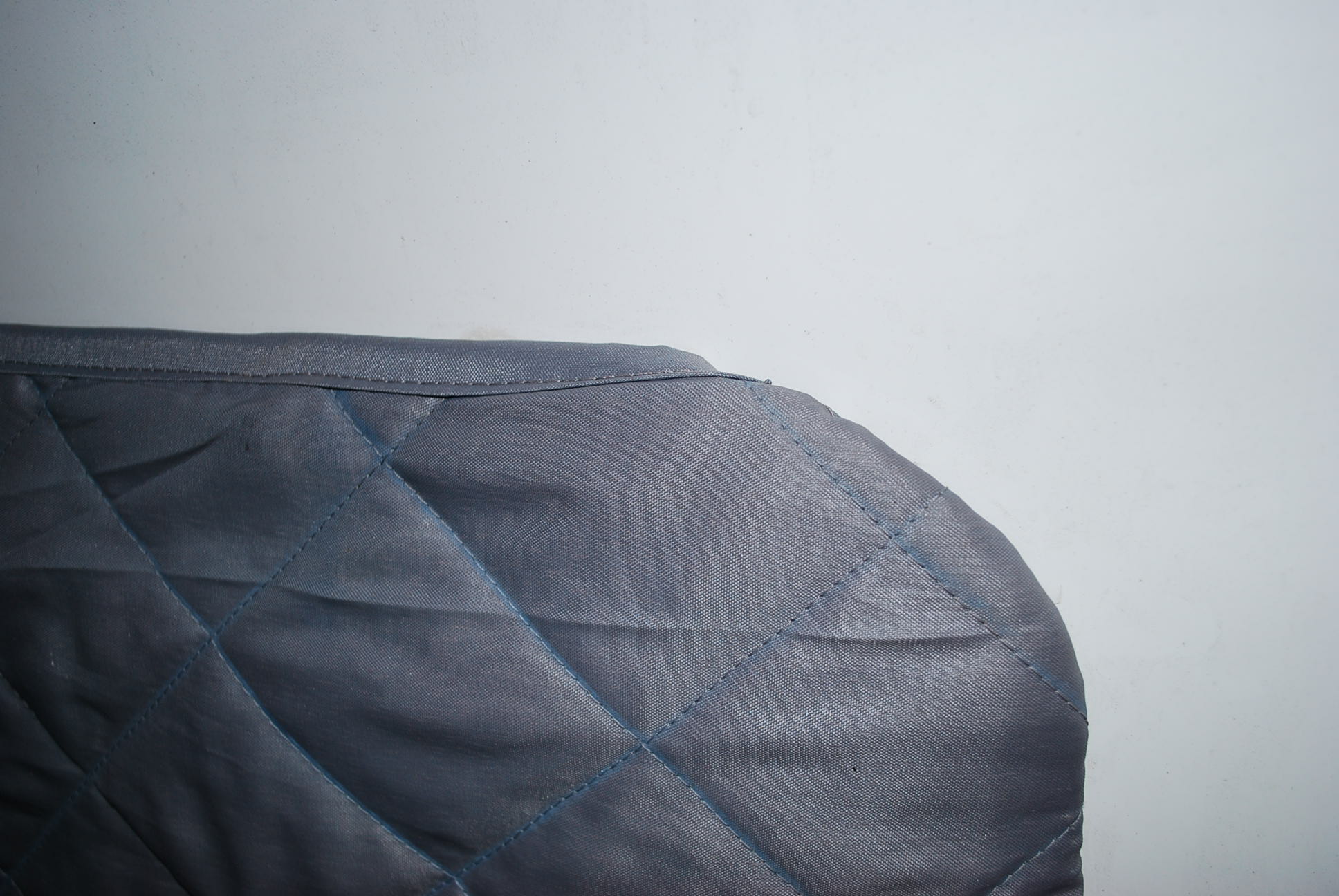 Se prepara un trozo del mismo que el exterior de la toldilla y se va a coser por todo el perímetro, empezando por la parte de donde acabaría la bisagra, siguiendo por todo el contorno y acabando por el otro lado de la bisagra. Este trozo alargado sería de de unos 10 cm de ancho, se montaría doblado ( se quedarían en 5 cm); y la costura se haría montando la tela acolchada a ras de esta nueva. Se cosería en "invertido", ya que la forma de bolsa después quedará hacia el interior.