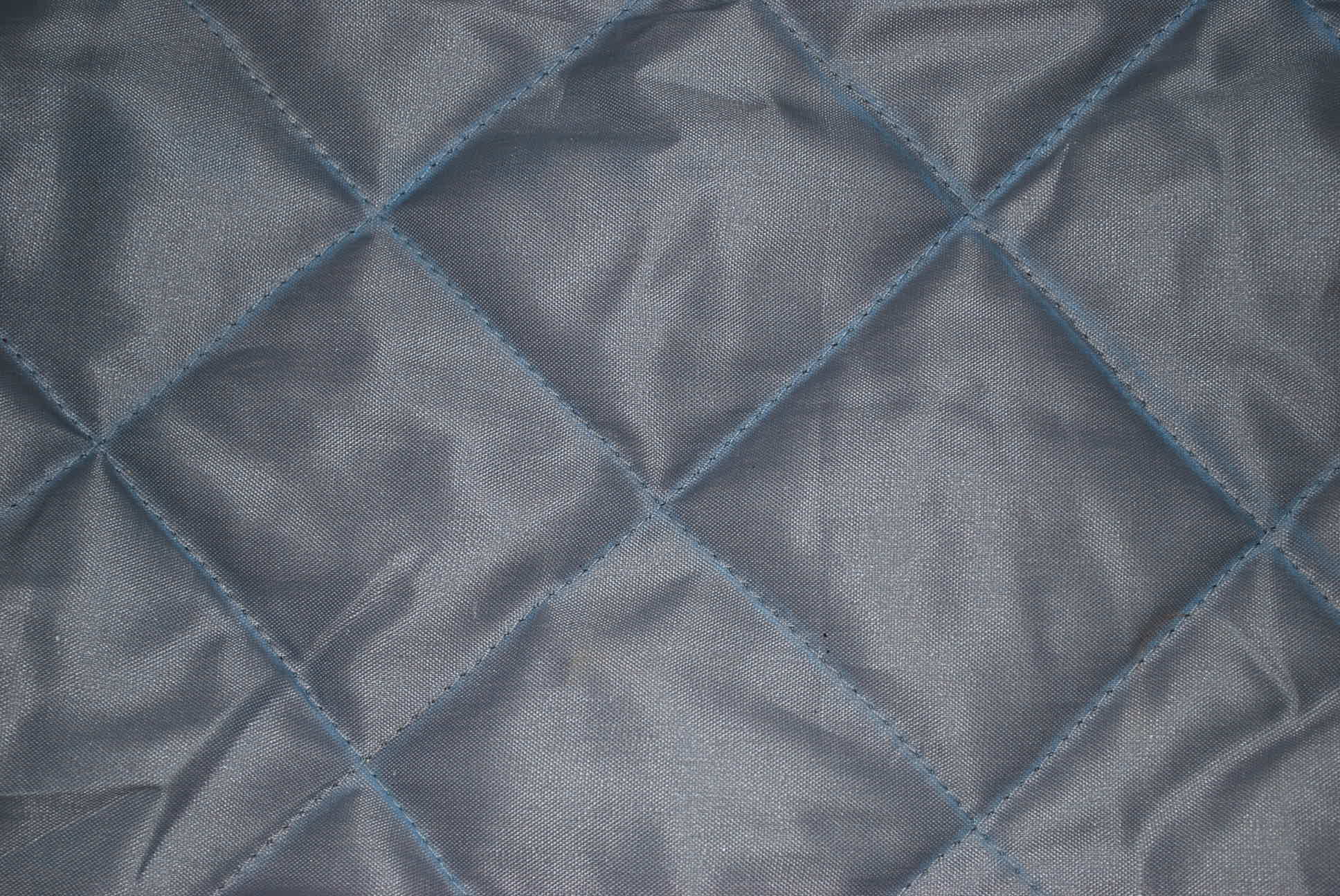 Lo primero es tener un género sintético, que sea lavable, opaco, que aguante el sol y el calor, y, a ser posible, del color de las toldillas "normales".... También otro género, alguno con interior de goata, microfibra, etc., que sirva para darle cuerpo, consistencia y acolchado. En este caso valdría uno de "tela de edredón" y la parte interior de éste (blanca) servirá para la interior de la toldilla. Como se aprecia en la foto.