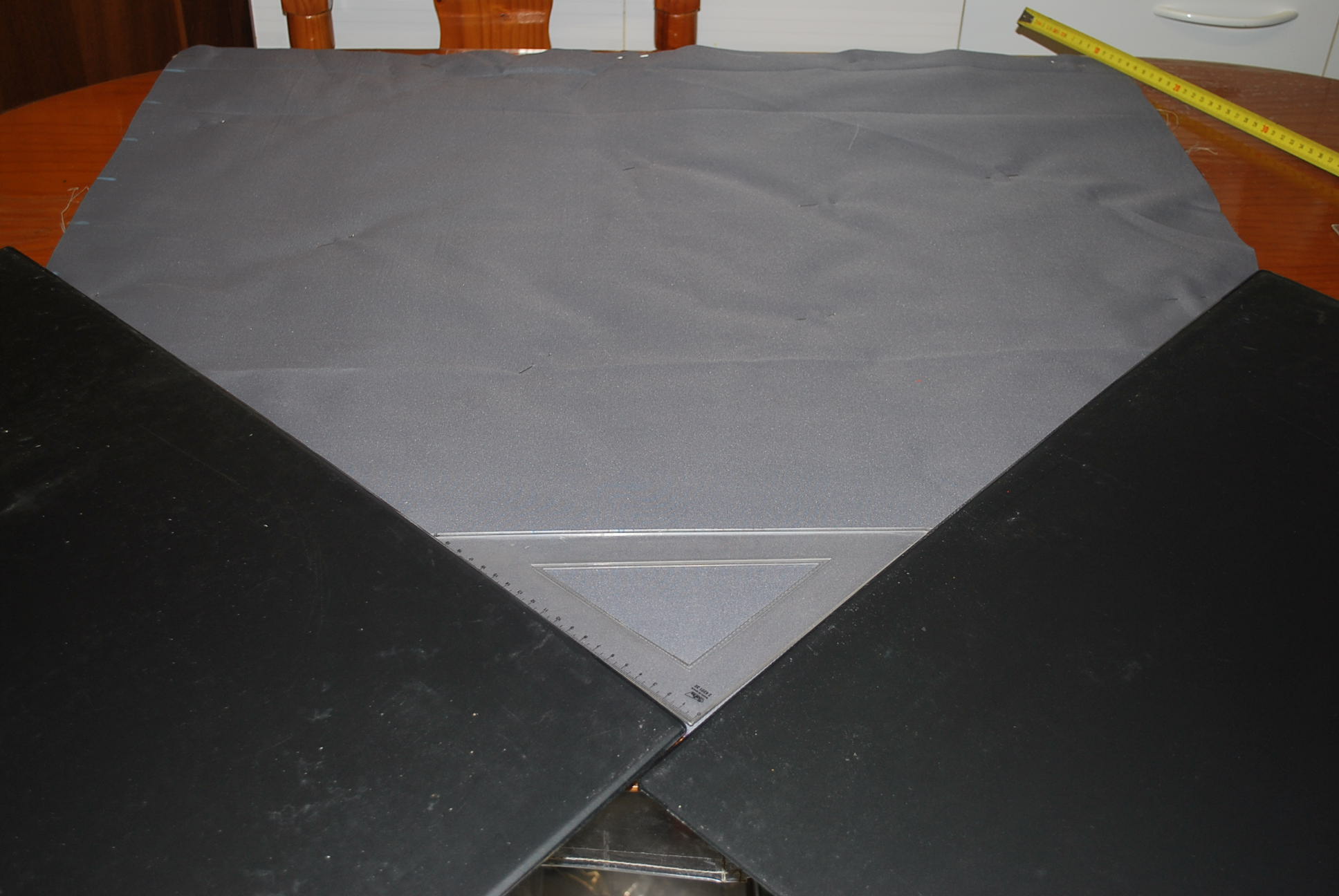 Este es un trozo de edredón, que formará la parte interna de la toldilla. la parte estampada quedará oculta. Hay que medir siempre las diagonales, de esta manera siempre nos saldrán "cuadrados" todos las esquinas, sin hacer formas deformadas...