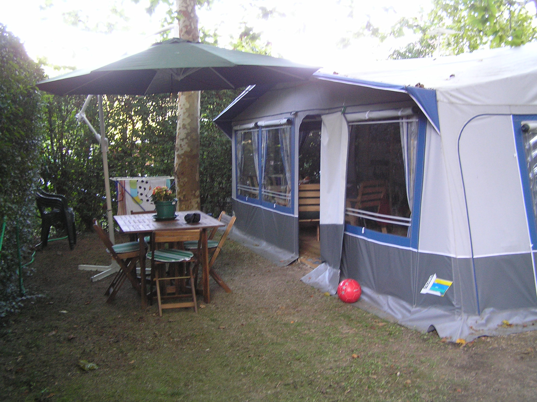 El camping en el que estoy ha permitido nunca "urbanizar la parcela" por lo que cualquier comodidad que monte he de desmontarlo al final de temporada.