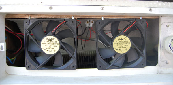 Yo para empezar, como no tengo ni pajolera idea de cómo funciona el frigo de la caravana, ni me acerco al tema de si se deben o no poner abajo los ventiladorres. Sólo opino que en pleno verano, ponerlos debajo hará que entre más aire caliente, digo yo...
