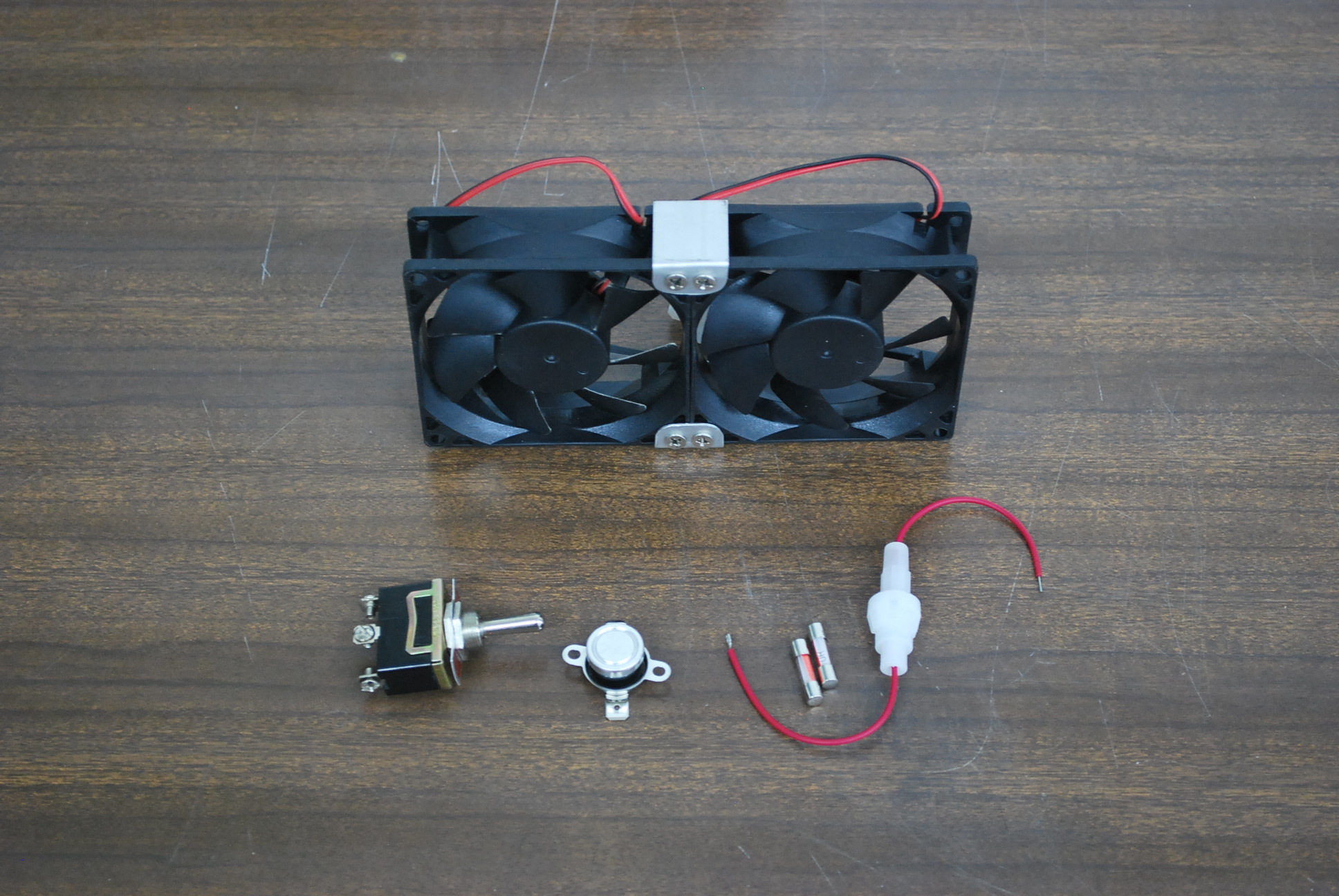 La sujeccion de los ventiladores al habitaculo son a traves de bridas de plastico y unas piezas "un tanto" especiales ( apliques de calzado: una parte se sujeta a la madera con 1 tirafondo, y en la otra se conecta la brida ).