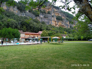 Camping muy tranquilo, limpio, a orillas del río Dordogna (baños fantásticos en el río), con piscina, tienda, bar y restaurantecon pizzas. wifi gratuito. 26 euros día dos adultos, coche caravana y electricidad.