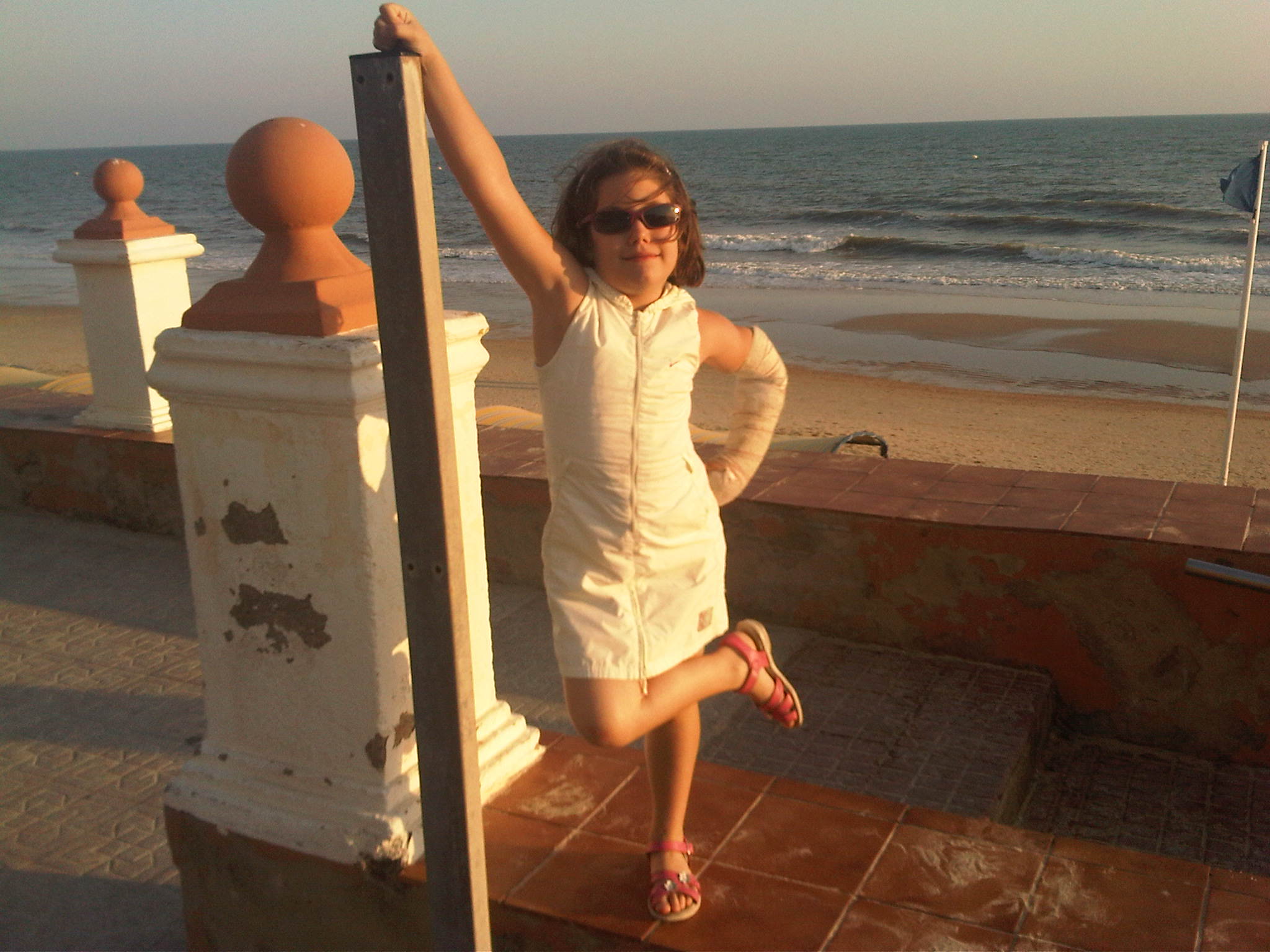 como vereis en la fotos, el angelito lleva un brazo escayolado, menos mal que nos acercamos un dia al Hospital de Huelva porque se habia mojado la escayola, la hicieron una radiografia y optaron por quitarselo al llevar ya 4 semanas y esta curada.