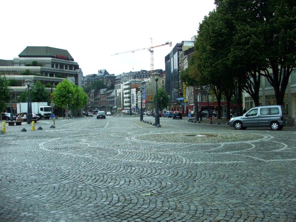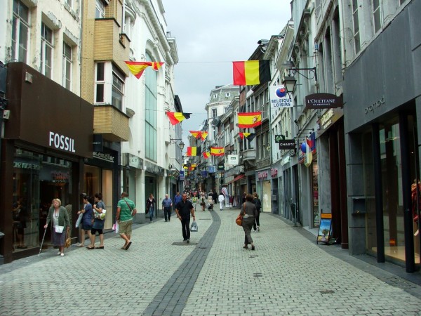 Esta es la ciudad de Lieja, una ciudad que nos gustó; fue el único día que nos llovió. Las banderas de España estaban por tema de la Vuelta Ciclista a España, que este año tiene etapas por allí.