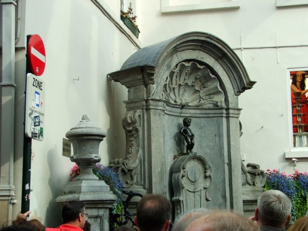 El famoso Maneken Pis; normalmente l chorro de la meada es pequeño, pero cada cierto tiempo el chorro llega a varios metros y es entonces cuando más gente hay; los horarios de las supermeadas están anunciados en un cartel